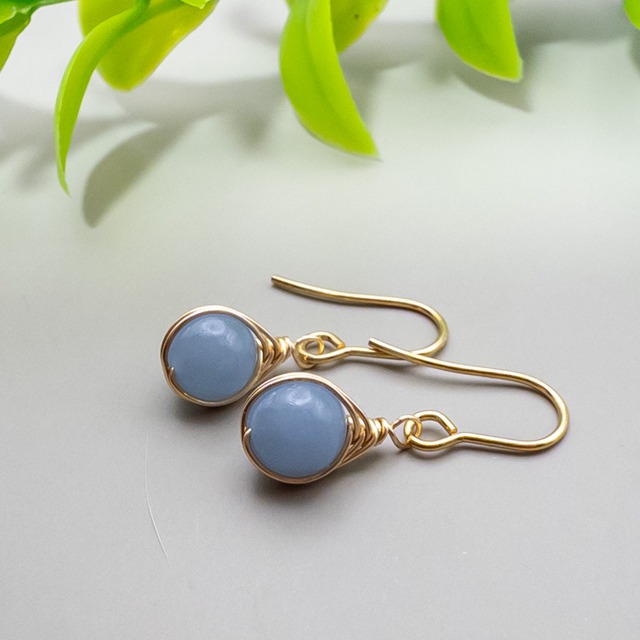 天使の名前を持つ 優しくミルキーな水色 エンジェライトをワイヤーで包み シンプルなピアスに。 天然石を使用しておりますので 表面に小さな傷や欠け、その他原石由来の傷や黒点 その石ならではの内包物、クラックなどがございます。 ワイヤーはアーティスティックワイヤーを使用しています ・‥…━…‥・‥…━…‥・‥…━…‥・‥…━…‥・‥… *自分にとって大切な何かに気付かせてくれる石 エンジェライト エンジェライトの名前は「天使」からもらっています。 何気ない毎日の中で、当たり前の様に過ぎていく時間。そんな中で様々な幸せに気付かせてくれる石と言われています。 身近すぎて気付かない大切なものや人。改めて感謝の気持ちと愛する気持ちを芽生えさせてくれるそうです。 また、自分自身で払拭できない過去の出来事や、潜在的な恐怖・不安を癒し、優しい気持ちにさせてくれると言われています。 「祈り」や「許し」という意味を持つこのエンジェライト。天使という名前にピッタリな優しい癒しの石です。 ・‥…━…‥・‥…━…‥・‥…━…‥・‥…━…‥・‥… 使用石 ペルー産 エンジェライト 約6mm ピアス素材 ステンレス サイズ ポスト太さ約0.7mm 全長 約2.4cm ※全長はお石のサイズによって若干異なります 両耳ペアでお届けいたします その他ご質問などございましたら お気軽にお問い合わせくださいませ。