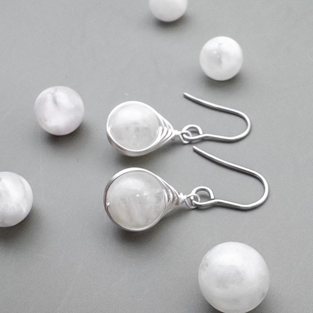 幻想の庭 ホワイトガーデンクォーツ ピアス ステンレス *embrace* シンプル フックピアス em150