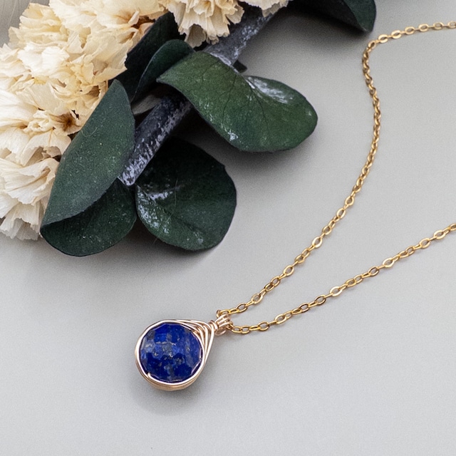 12月の誕生石、アフガニスタン産ラピスラズリを使用した シンプルでどこかクラシカルな印象のペンダント 枠の部分はシルバー925にK18で鍍金したものを使用しております 宝石質のラピスラズリ。 パイライトの入り方、藍色の濃さによって全てのお石で表情が異なります お写真はサンプルとしてご確認ください また天然石ですのでどうしても小さな傷やカケがございます。 特にラピスラズリはカット面に母岩やパイライトがかぶると 欠けたような感じに見えたり、手触りになることがございます。 ご理解ご了承ください。 ・‥…━…‥・‥…━…‥・‥…━…‥・‥…━…‥・‥… *古代より崇められてきた聖なる石。天空の欠片 ラピスラズリ 幸運のお守りとして人気のラピスラズリは、悪いものを退けるパワーを持つといわれています。 それは、外部からだけではなく自信の心の悪いものをも退けるといわれています。 心にある誤った考え方を正し、判断力を高めるため、進むべき道に迷った時などに身に着けると、成功や幸運へと導いてくれるそうです。 愛と美の女神アフロディーテとも関係が深く、古代ローマ時代では、恋人たちの愛と夢を守る石として愛されてきました。 愛する人との愛を守る、恋愛のお守りとしてもおすすめです。 ・‥…━…‥・‥…━…‥・‥…━…‥・‥…━…‥・‥… 使用石 宝石質 ラピスラズリ アフガニスタン産 約8.5mm前後 ※お石により差がございます 石枠 シルバー925 K18GP (sv925k18仕上げ) チェーン ステンレス K18GP 45cm その他ご質問などございましたら お気軽にお問い合わせくださいませ。