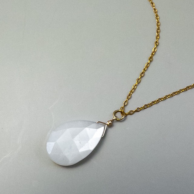 タンザニア産 ホワイトカラーのムーンストーン カット面にシラーがふんわり 存在感あります! 天然石を使用しておりますので、表面に細かな傷、 内部のクラック、お石由来の内包物がございます 実物のお色味に合わせておりますが、お使いの環境により若干見え方が違う場合がございます。 ・‥…━…‥・‥…━…‥・‥…━…‥・‥…━…‥・‥… *出会いと恋愛の石 ムーンストーン ふんわりとした乳白色ーが神秘的なムーンストーン。 女性に特に人気のあるお石です。 月の光を宿したようなムーンストーンは、古くから神秘的な力を秘めた石として、人々に愛されてきました。 「月」は女性性の象徴であり、そのエネルギーを持つとされる石です。 また、出逢いと恋愛の石と言われ、持ち主を大きな愛情で満たしてくれるそうです。 愛する人との出逢い、恋愛を成就させ、幸せへと導いてくれるといわれています。 。 ・‥…━…‥・‥…━…‥・‥…━…‥・‥…━…‥・‥… 使用石 タンザニア産 宝石質 ムーンストーン 約13mm前後 ※お石によって異なります チェーン 金属:ステンレス K18GP 長さ:約45cm / 約50cm お選びいただけます サンプルは45cmで撮影しております その他ご質問などございましたら お気軽にお問い合わせくださいませ。