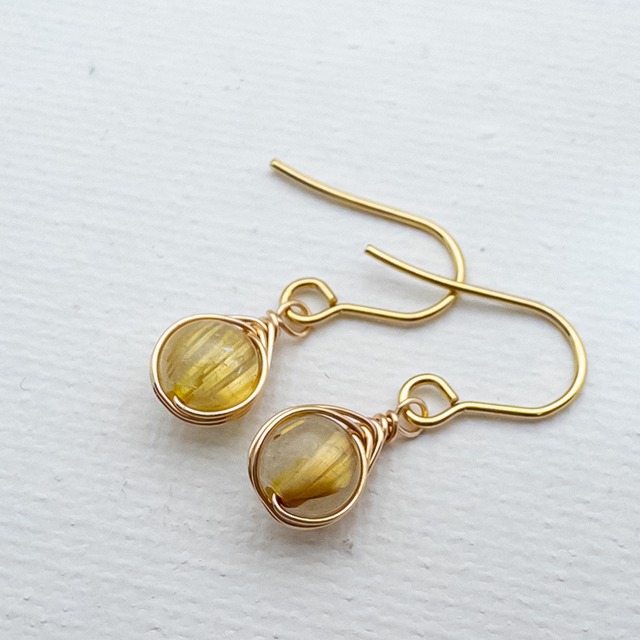 極小ピアス シトリン ピアス *embrace* ステンレス フックピアス ワイヤーラッピング em016s2