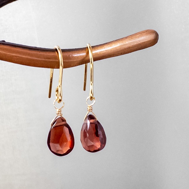 モザンビーク産 宝石質 ガーネット ピアス *Solta* K18GP フックピアス K14GF変更可 so009s5