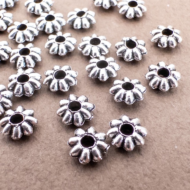 *30個* 合金 スペーサービーズ 5.5x2mm シルバー 花 フラワー ロンデル bz146s