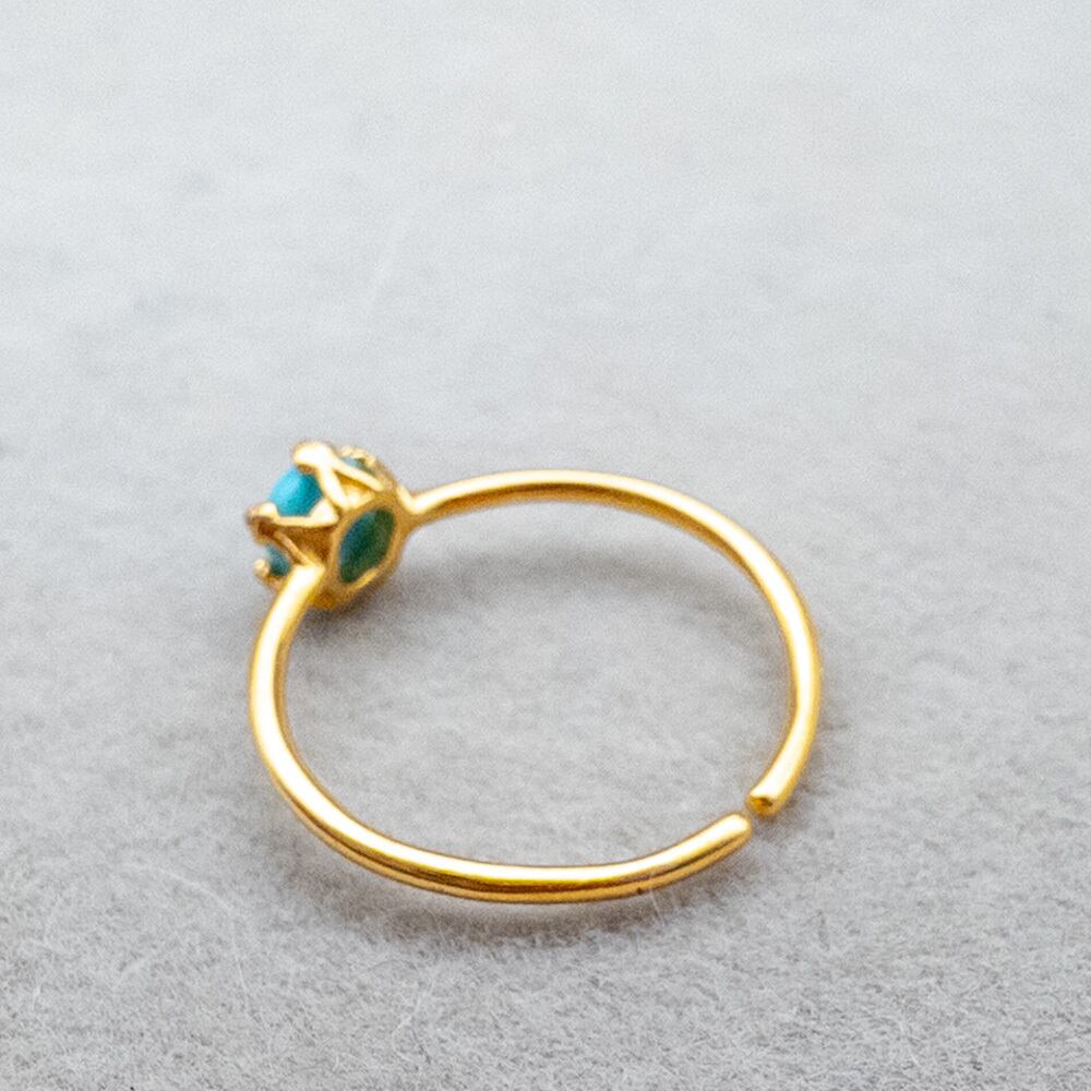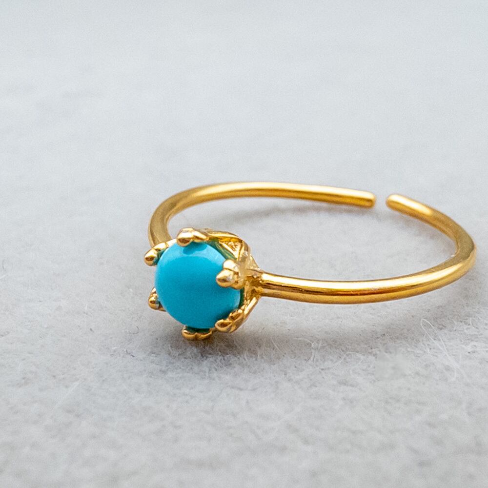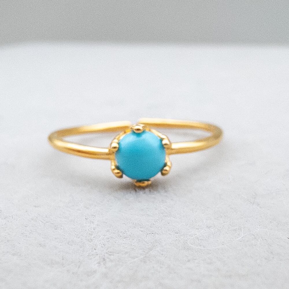 キングマンターコイズ リング 華奢 指輪 SV925 クラウン カボション フリーサイズ ピンキーリング r025s