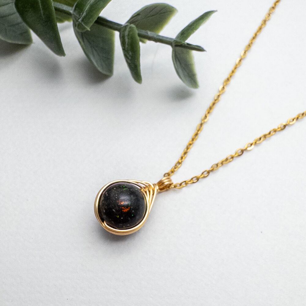マトリックスオパール ペンダント ネックレス ステンレス ワイヤーラッピング em134