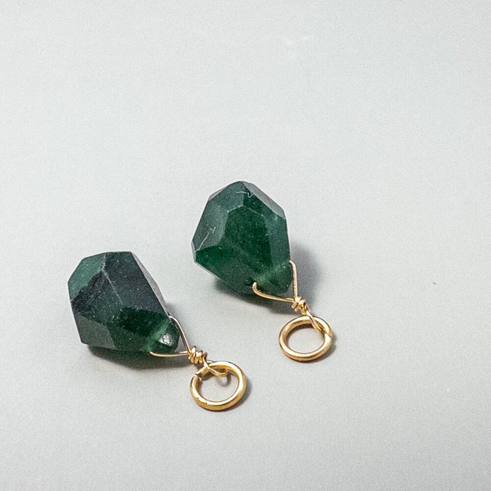 *1ペア* インド産 アベンチュリン ピアスチャーム *fofo* 天然石 チャーム ステンレス fo028s3