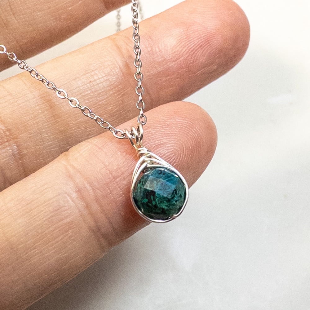 幸運な出会いの石 クリソコラ ペンダント ドロップ ステンレス ネックレス p184s