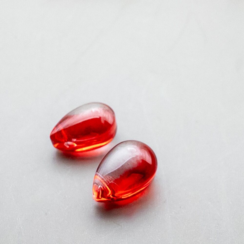 *40粒* ガラスビーズ ティアドロップ レッド 横穴 クレオ 9x6mm bz285