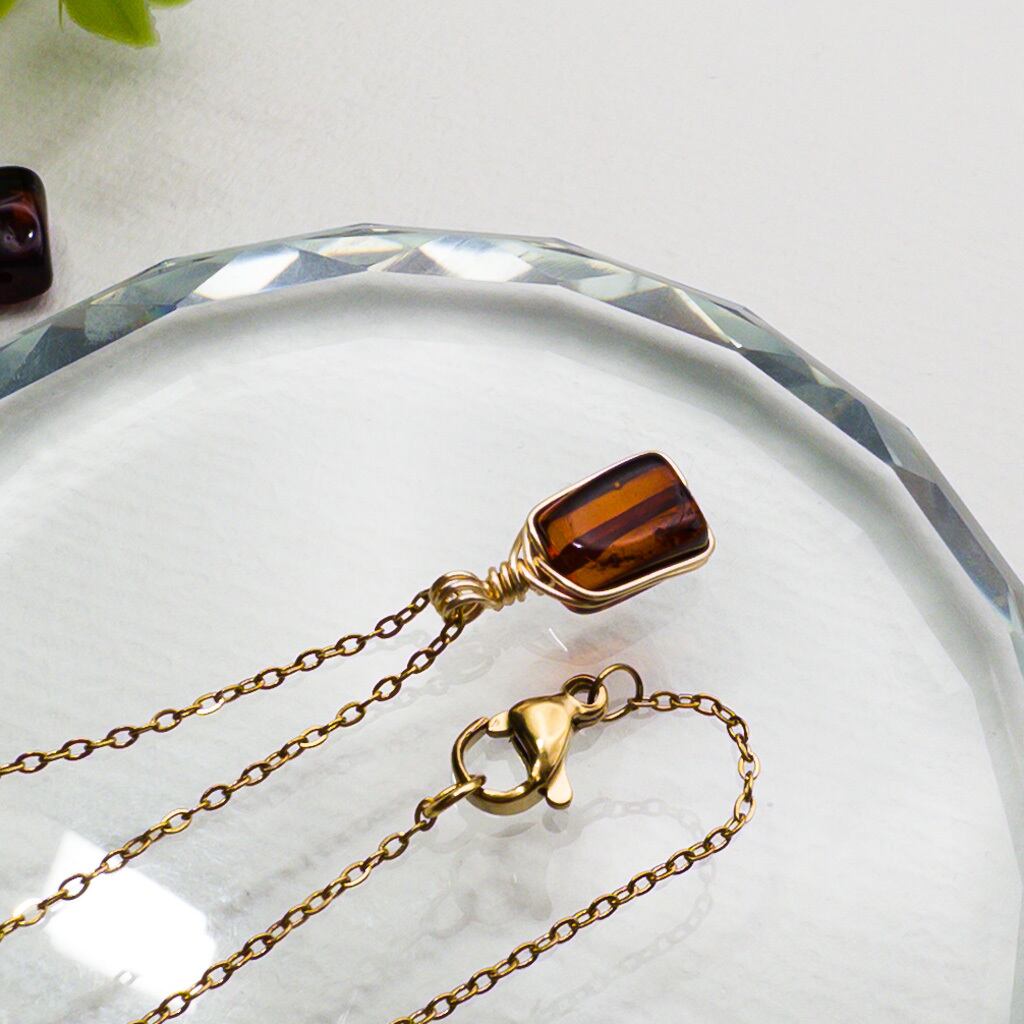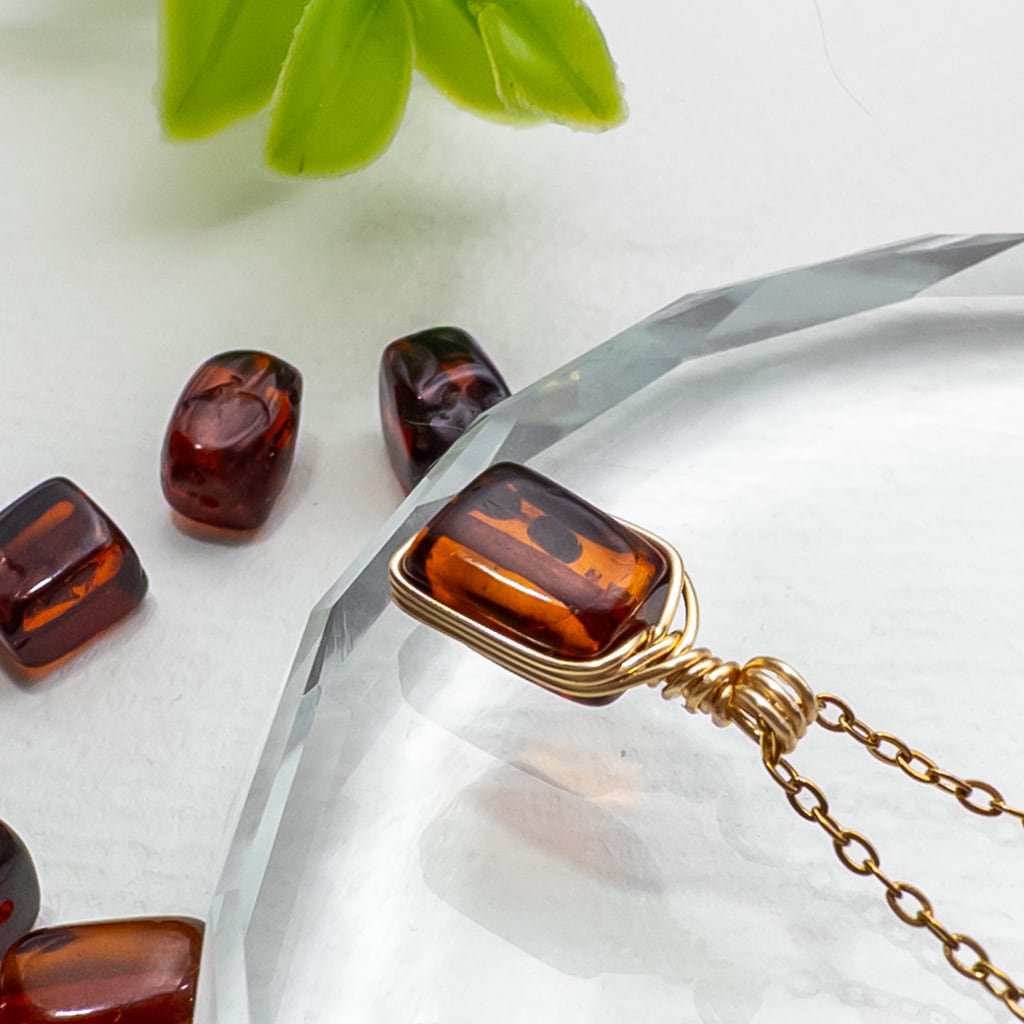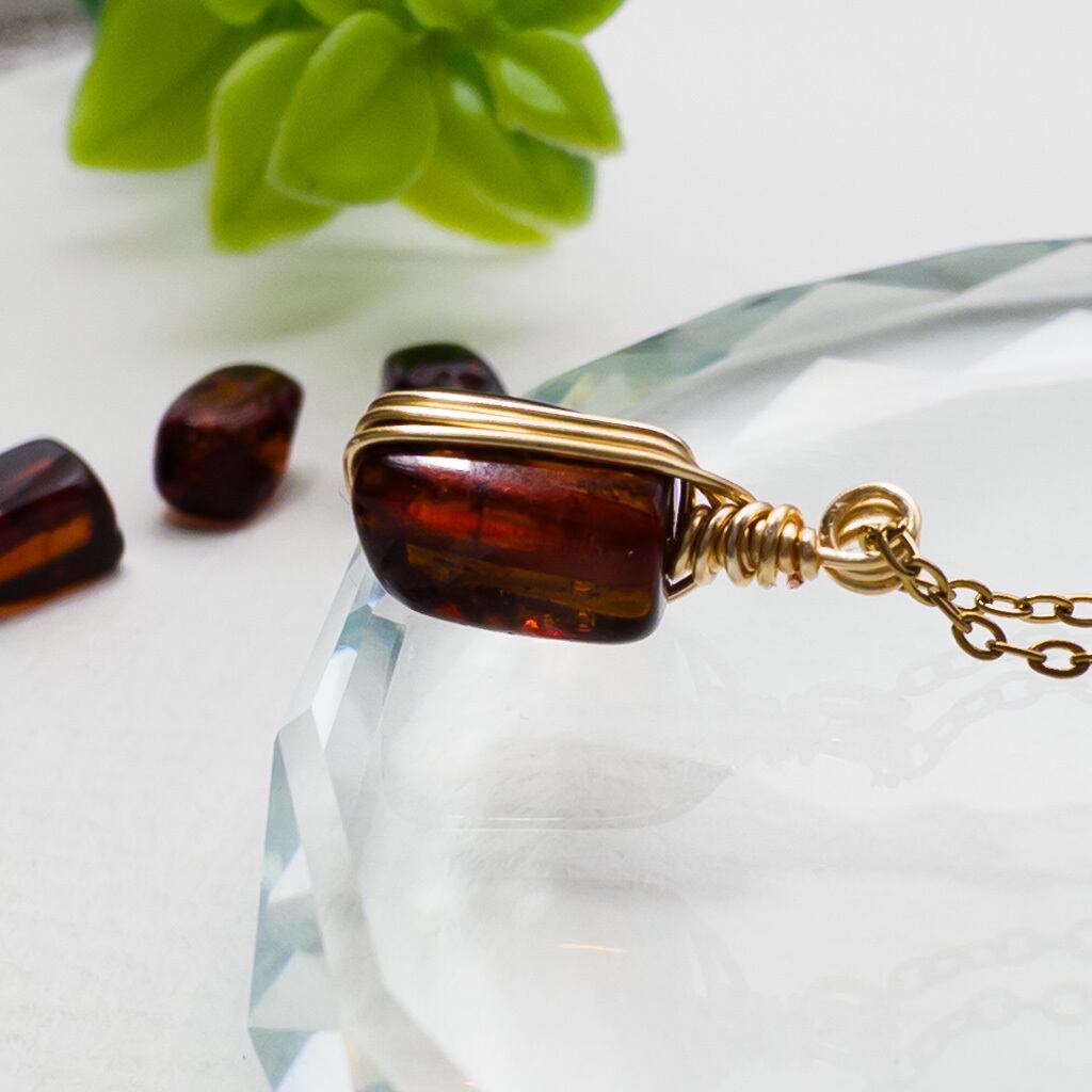 バルティックアンバーをワイヤーで包んだ小さなペンダント