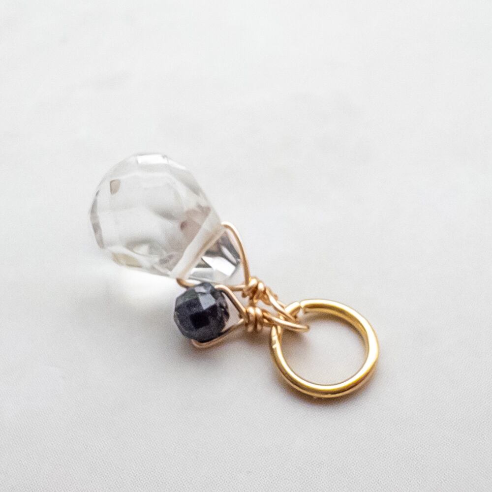 シンプルなデザインで日常的に持ち歩ける、水晶と誕生石のチャームです