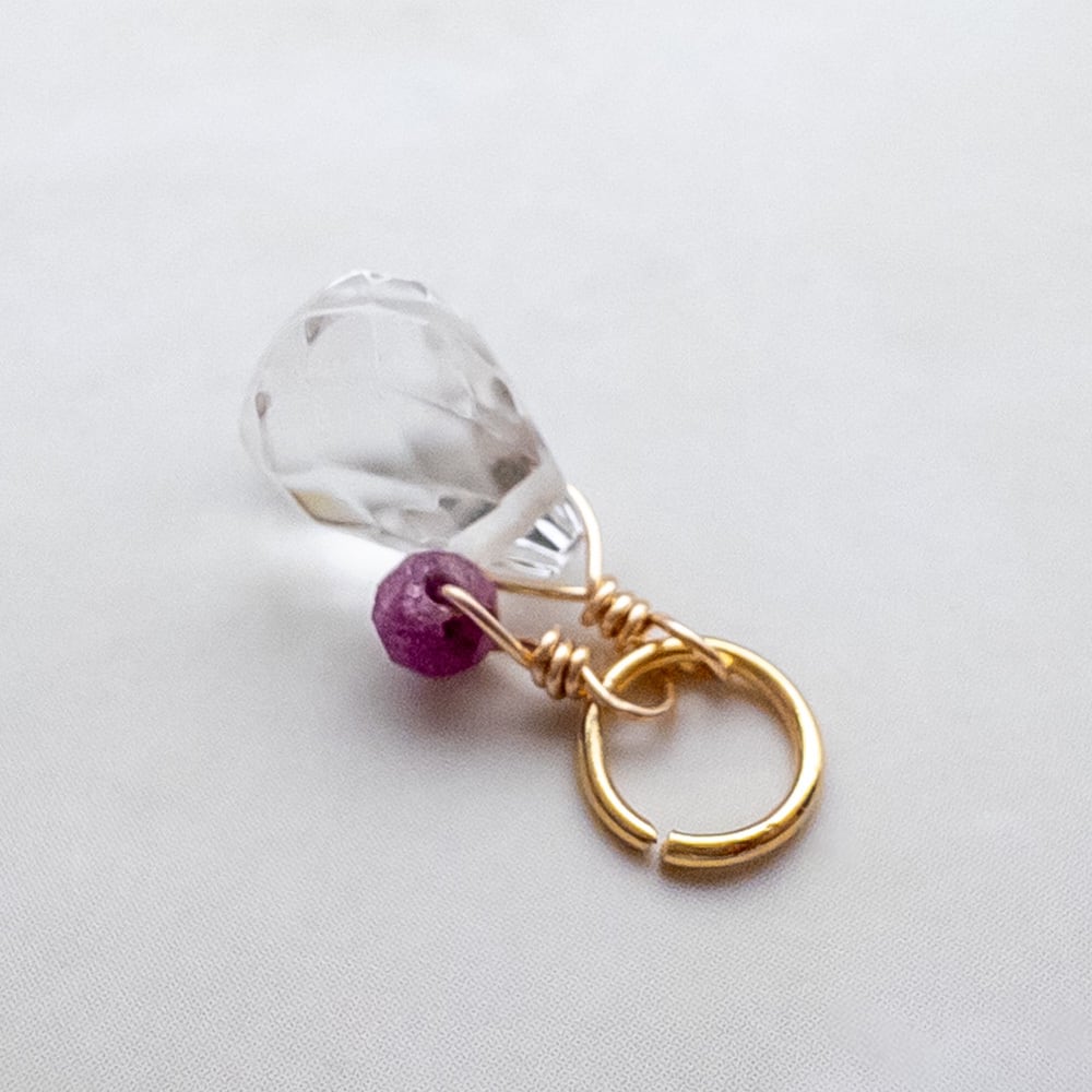 シンプルなデザインで日常的に持ち歩ける、水晶と誕生石のチャームです