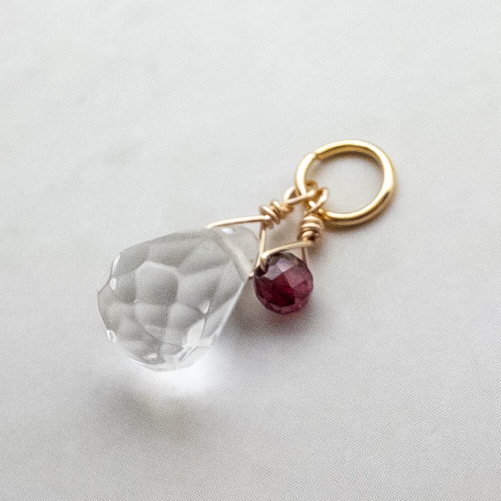 シンプルなデザインで日常的に持ち歩ける、水晶と誕生石のチャームです