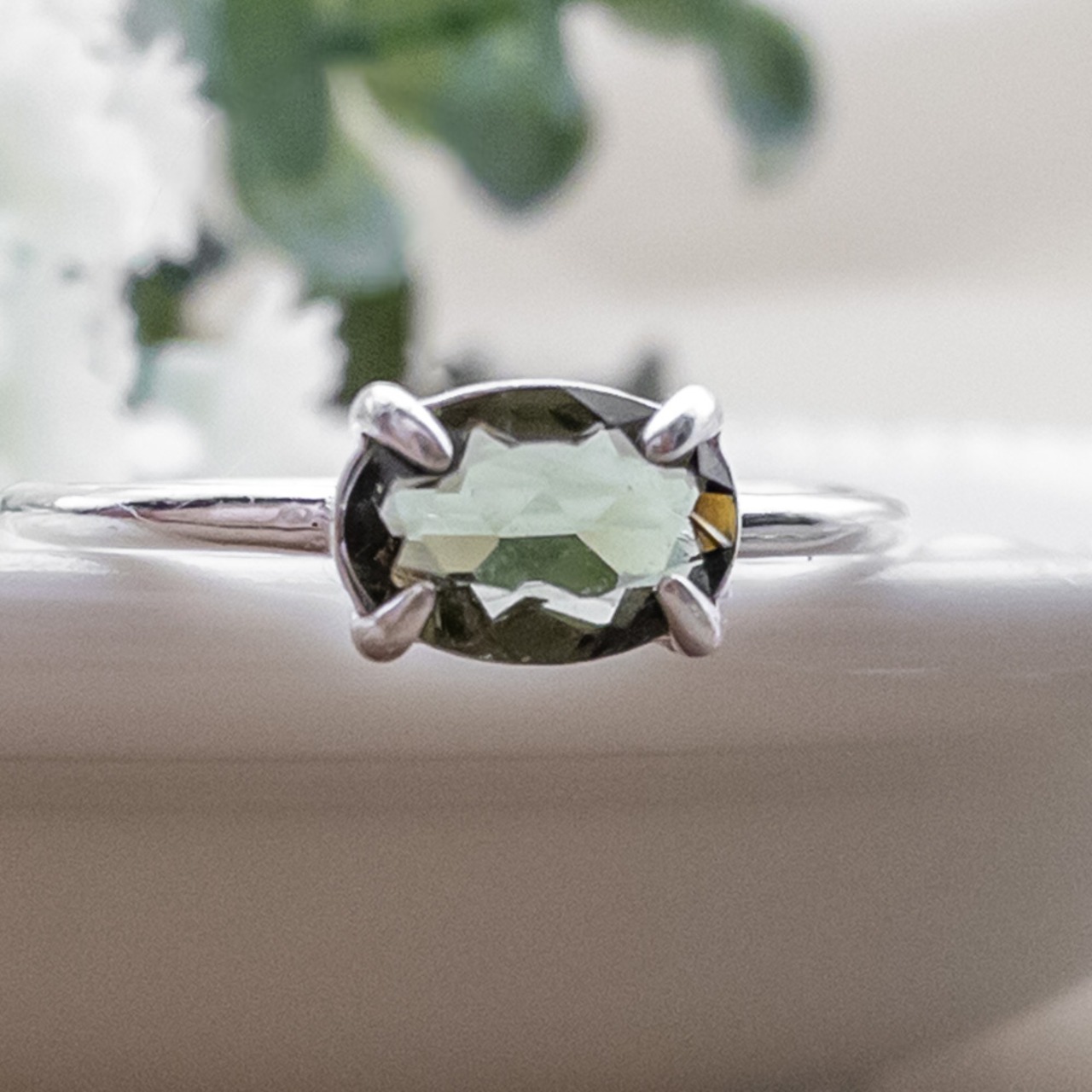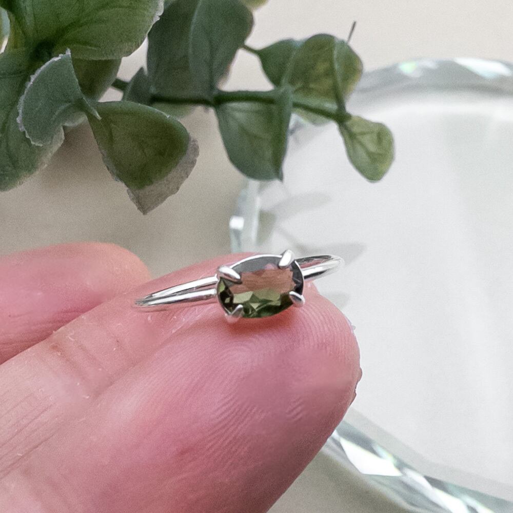 希少石 モルダバイト リング 華奢 指輪 SV925 フリーサイズ #7~ ピンキーリング sv037s