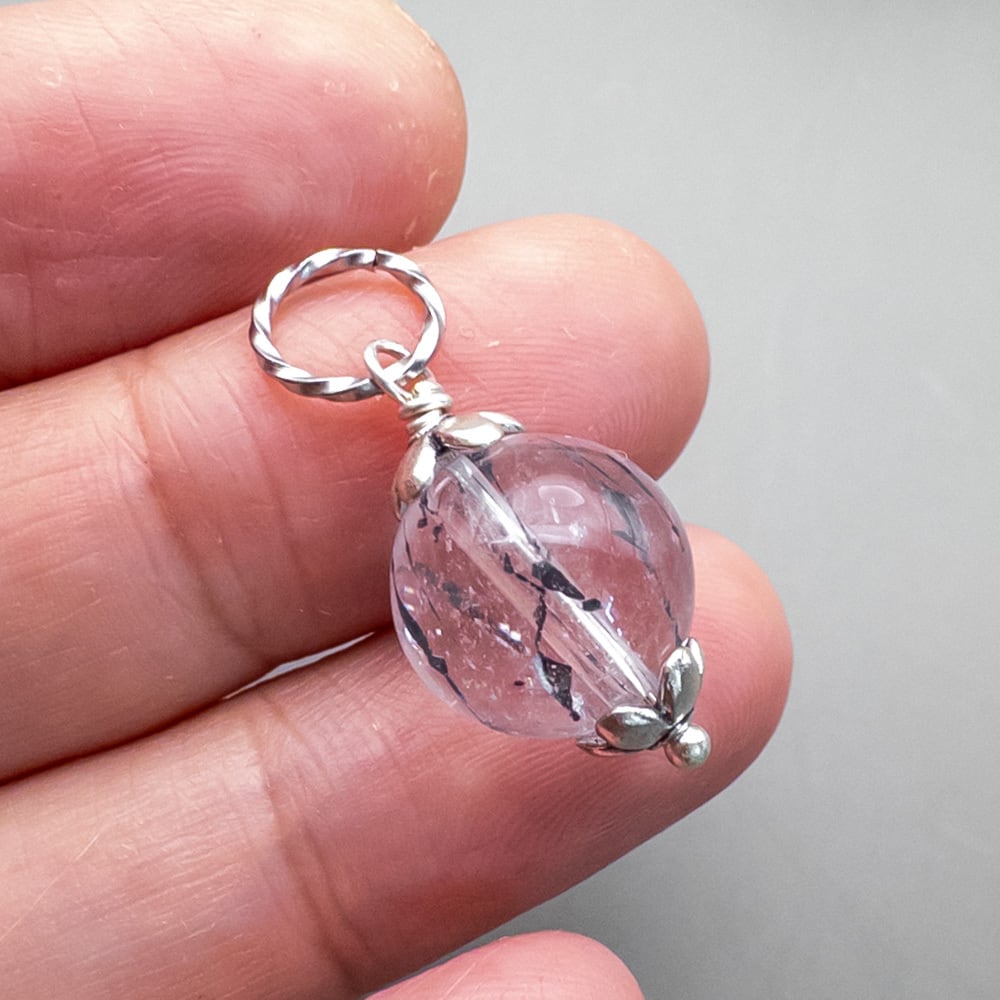 ヘマタイトインクォーツ チャーム *coron* 11mm ネックレスやイヤホンジャックへ変更可 cr063