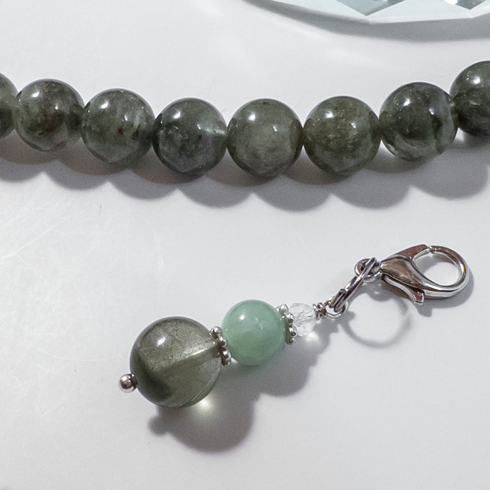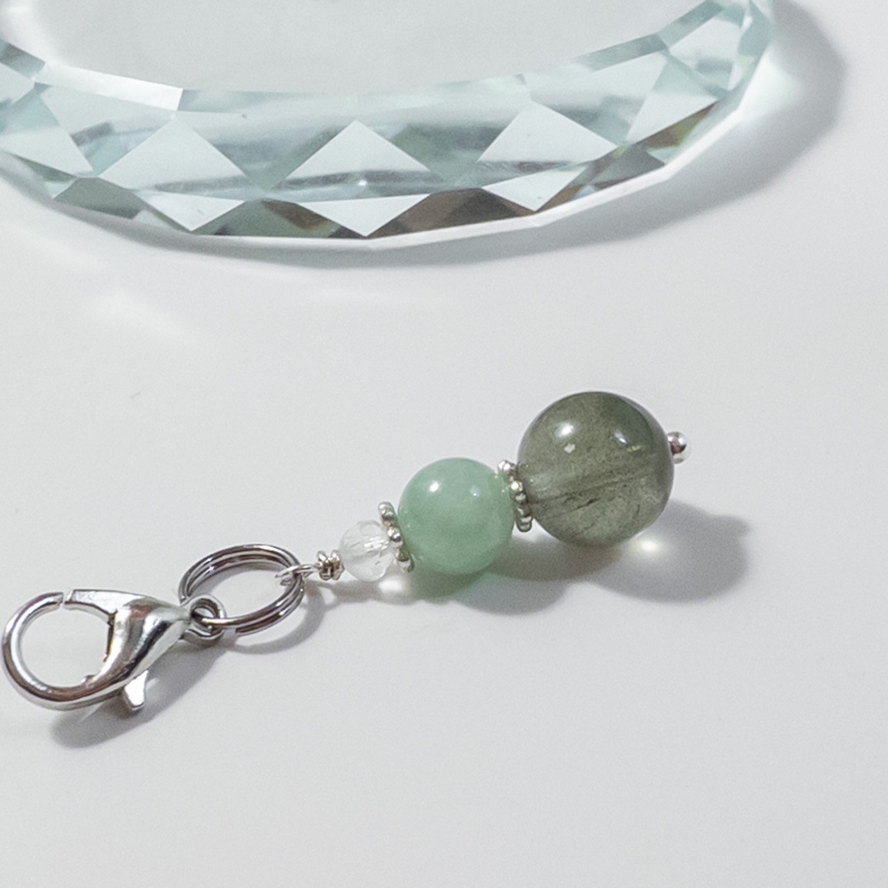 財を貯める石 ガーデンクォーツ 翡翠 チャーム イヤホンジャック ストラップ 変更可能 c-371s3