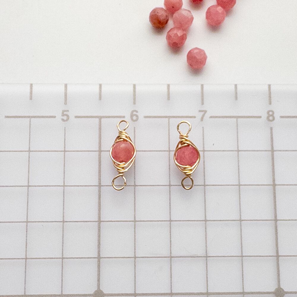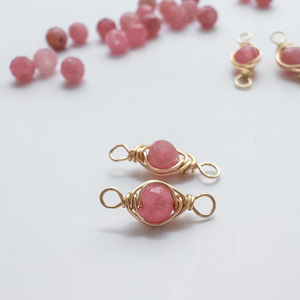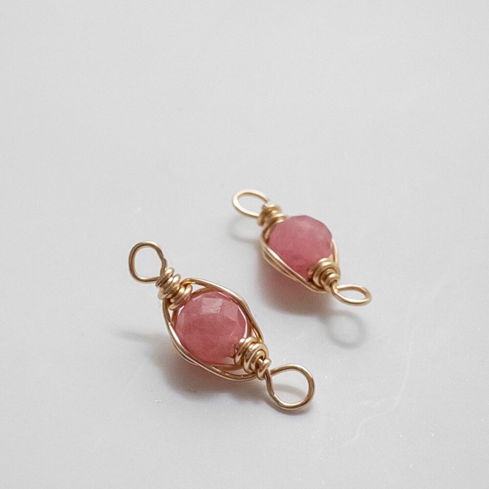 *4個* 天然石 パーツ ロードナイト ワイヤーラッピング コネクター チャーム 金 ワイヤー巻き te109