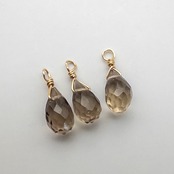 *3個* 天然石 パーツ スモーキークォーツ チャーム ブリオレット 金色 アクセサリー作り te098s