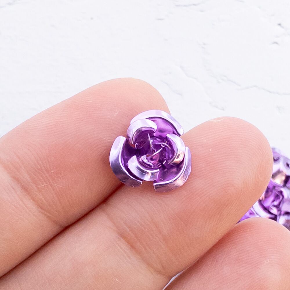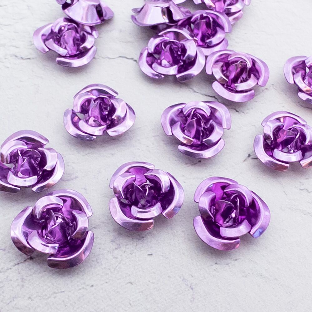 *40個* アルミニウム ローズ 12mm パープル ネイルやレジンなどのアクセサリー作りに et155