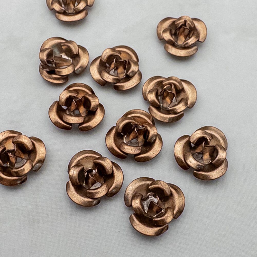 *40個* アルミニウム ローズ 8mm ブラウン レジンなどのアクセサリー作りに et103s