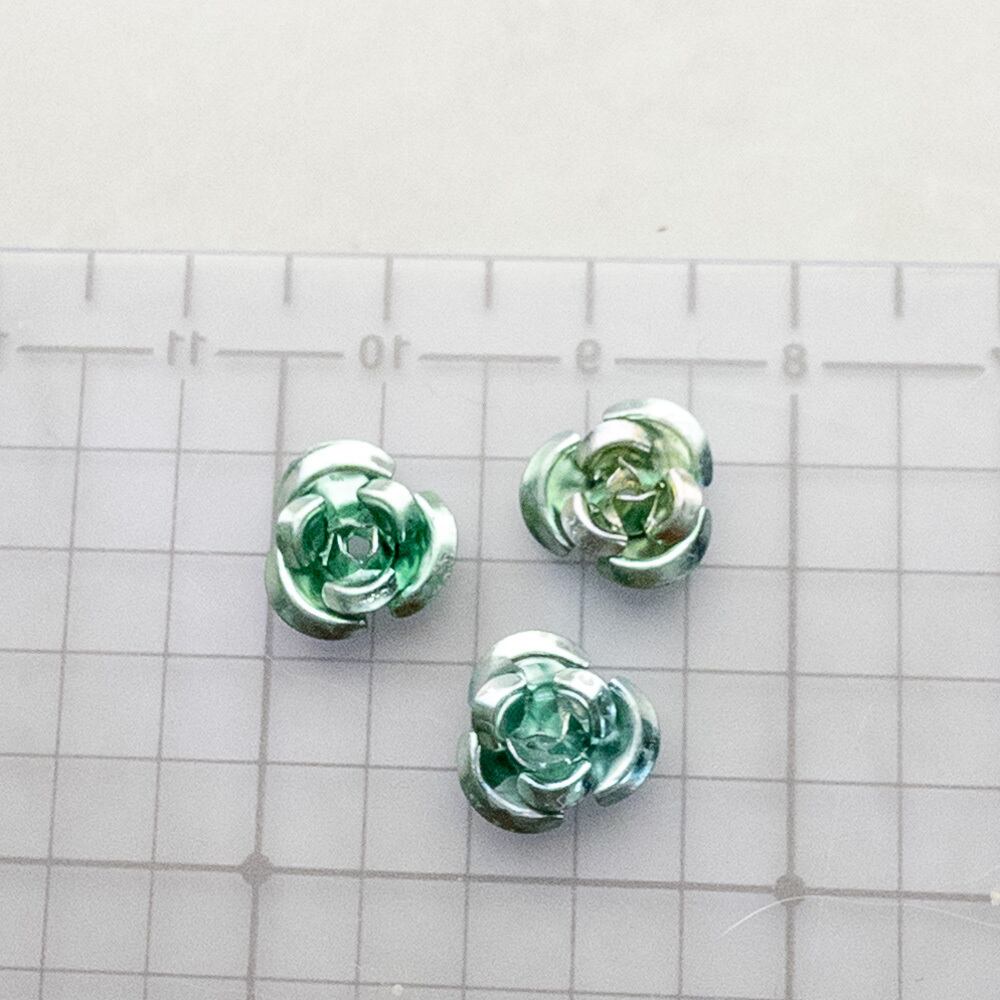 *40個* アルミニウム ローズ 8mm ライトグリーン レジンなどのアクセサリー作りに et104s
