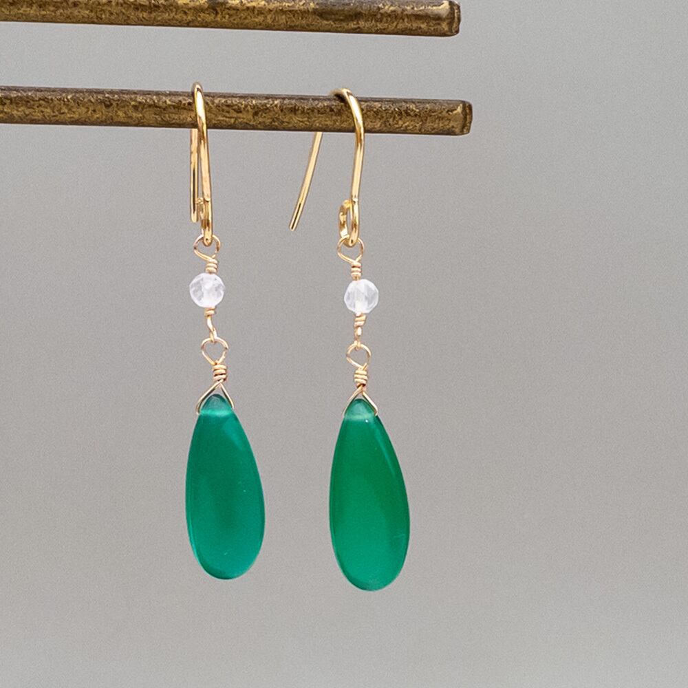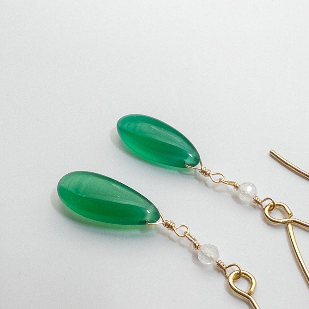 宝石質 グリーンオニキス 水晶 ピアス ステンレス *Solta* フックピアス K14GF変更可能 fi138