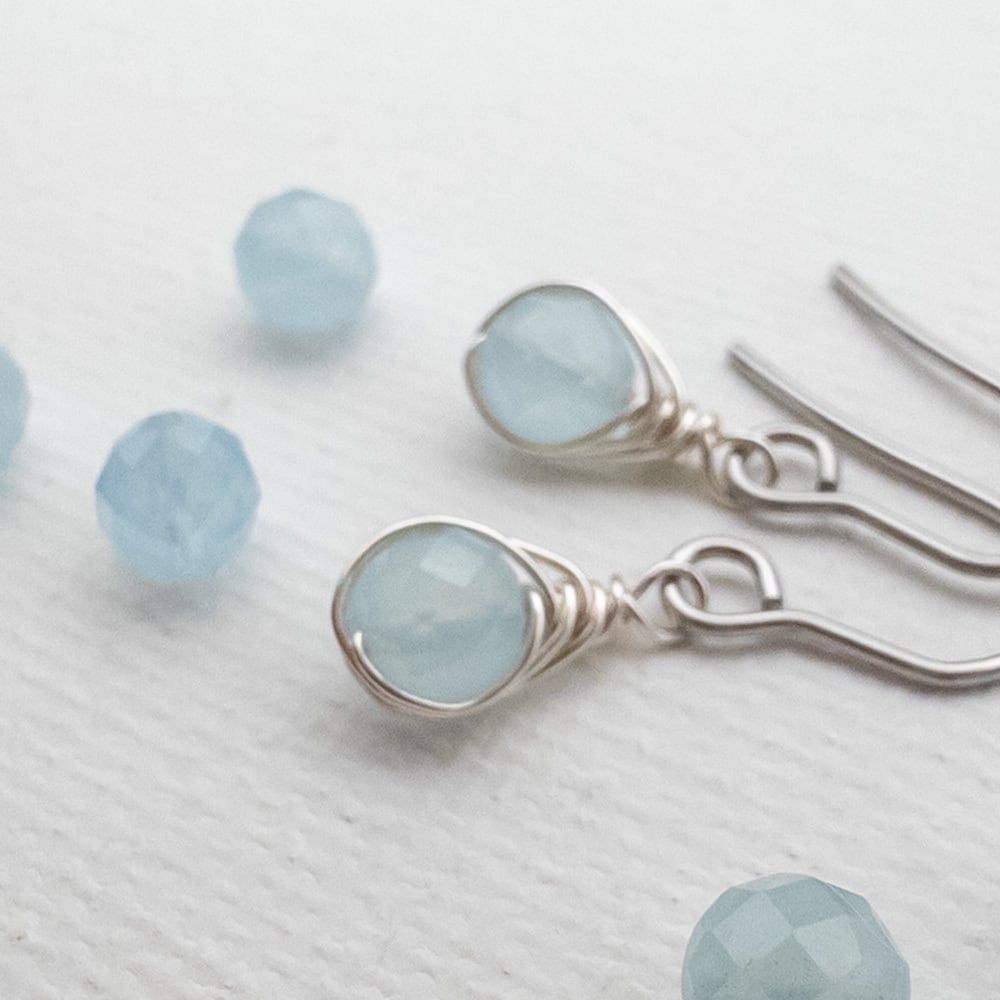 小さな アクアマリン ステンレス ピアス *embrace* ワイヤーラッピング em030s