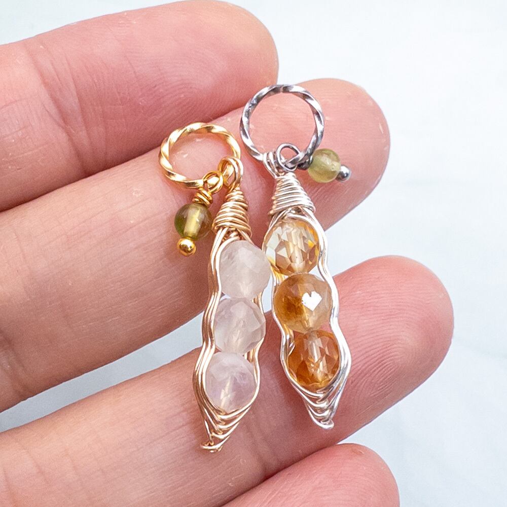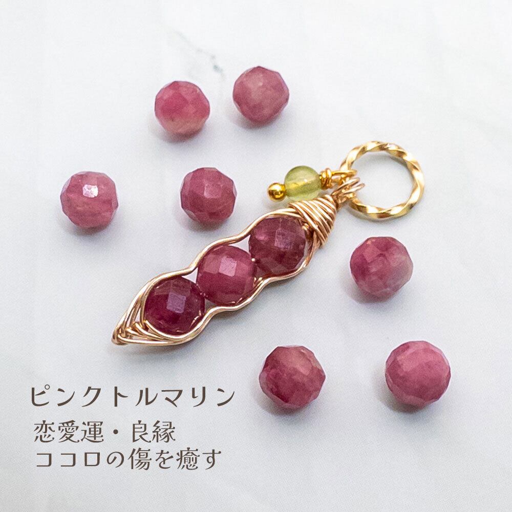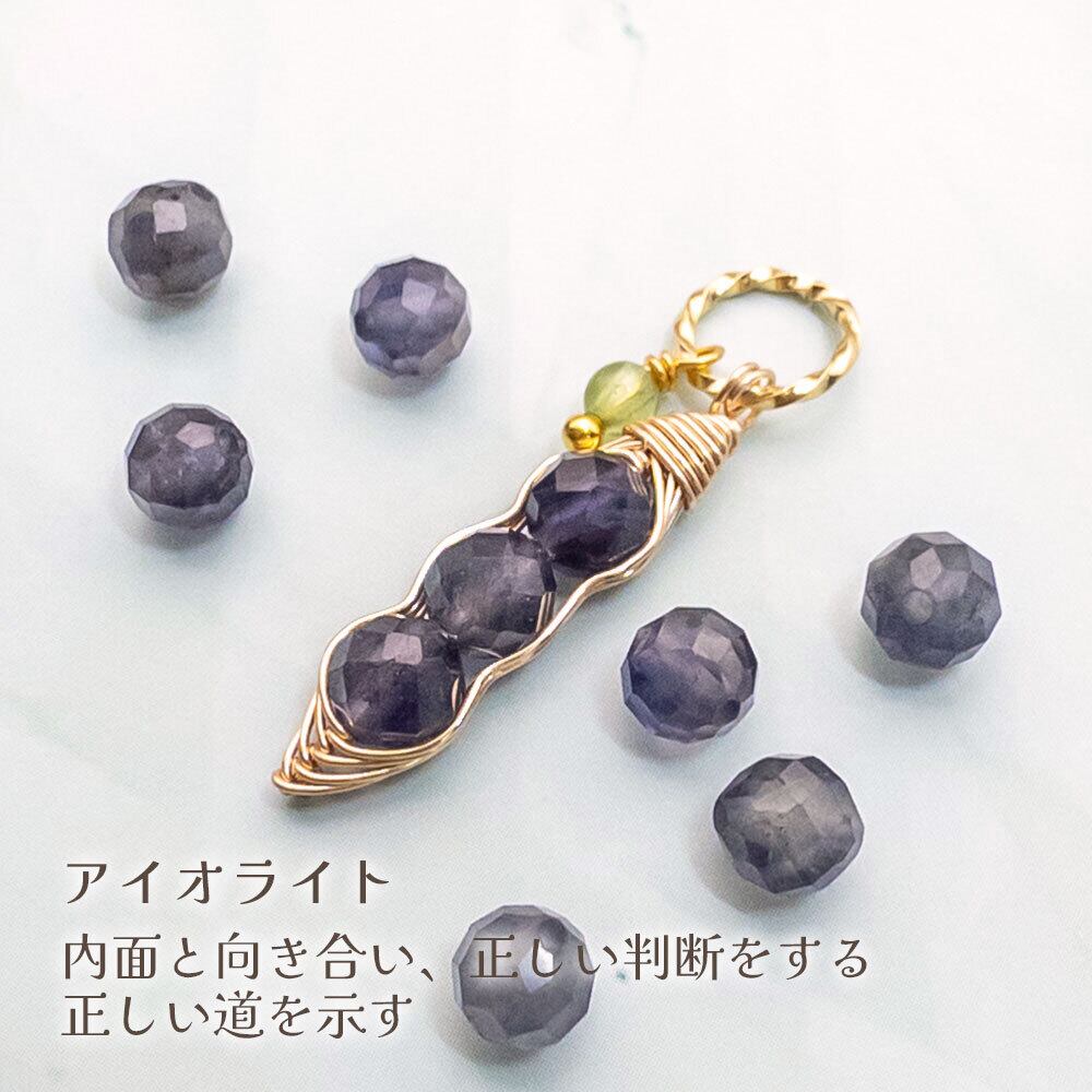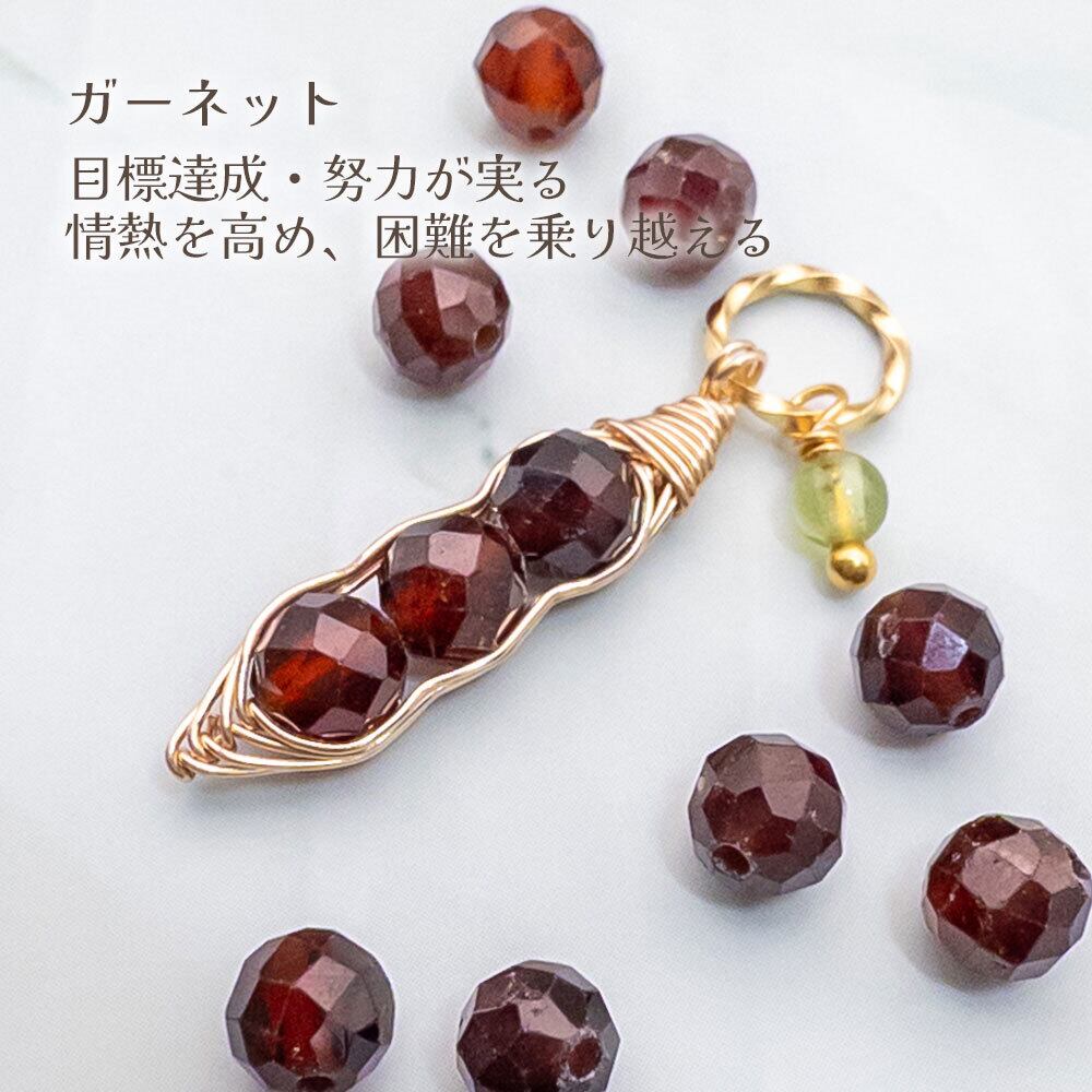 ガーネットやアクアマリンをワイヤーで包み作った豆のおまもり