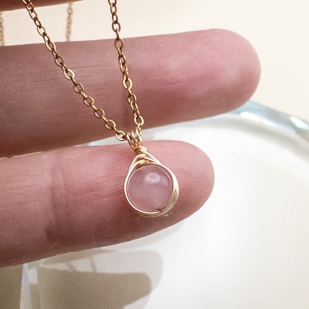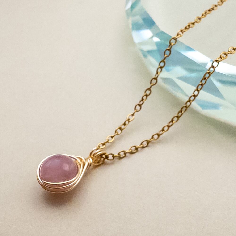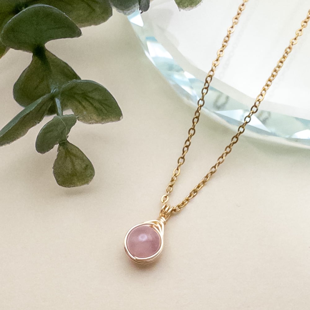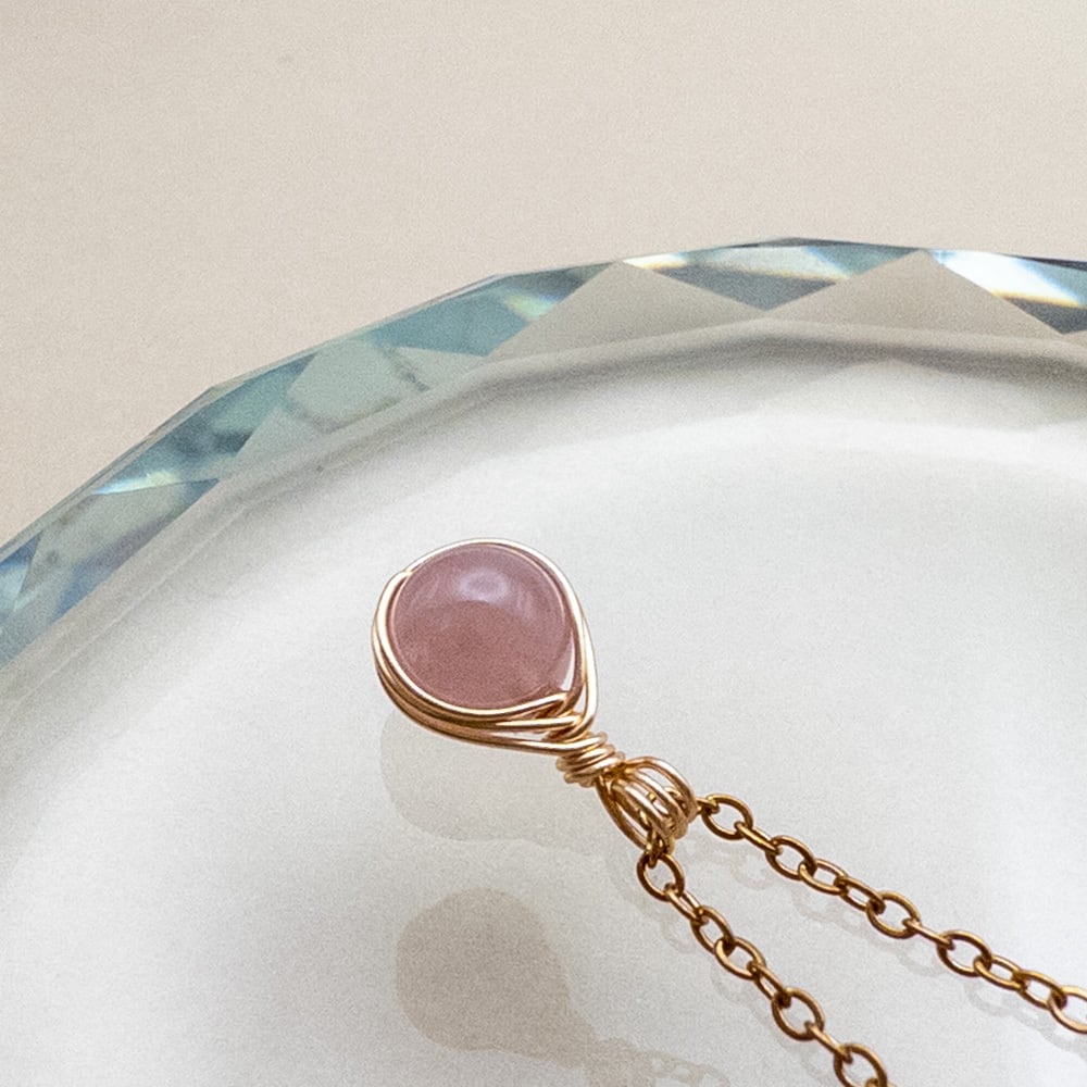 小さな ディープカラー ローズクォーツ ペンダント ネックレス ステンレス ワイヤーラッピング p037s2