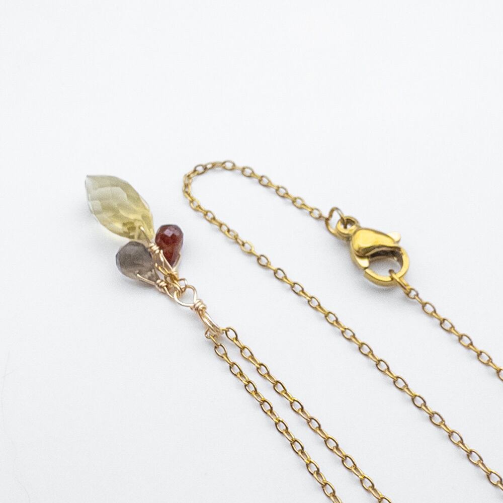 ハニークォーツ ガーネット スモーキークォーツ ペンダント *fiore* ネックレス ステンレス fi140