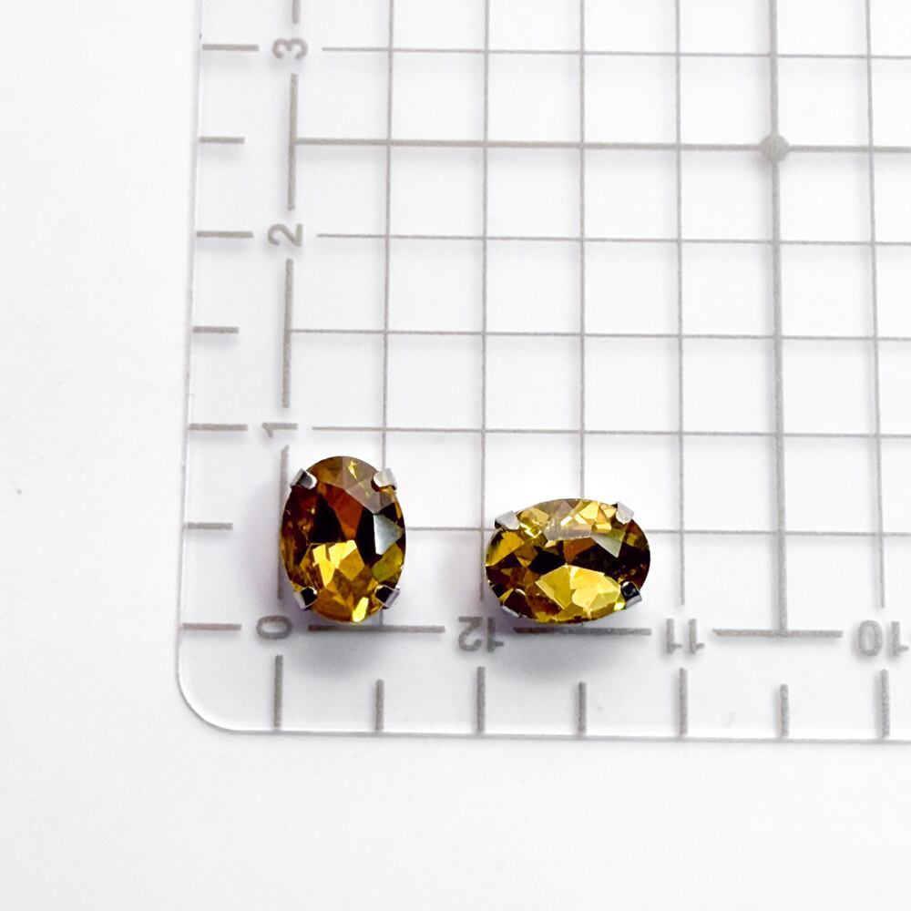 *15個* ガラス ラインストーン 8x6x4mm トパーズ 真鍮セッティング オーバル bj019s