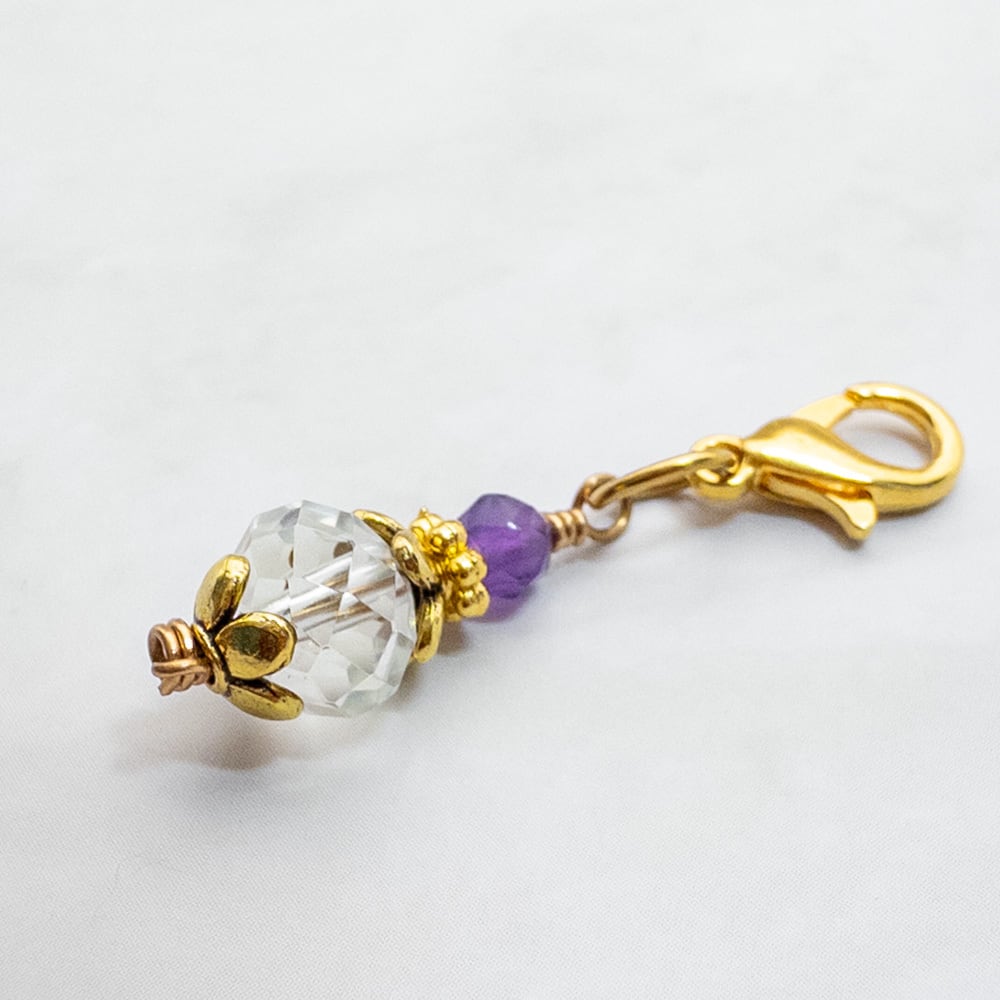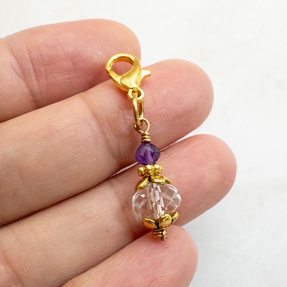 グリーンとパープル、2つのアメジストを組み合わせお守りチャーム