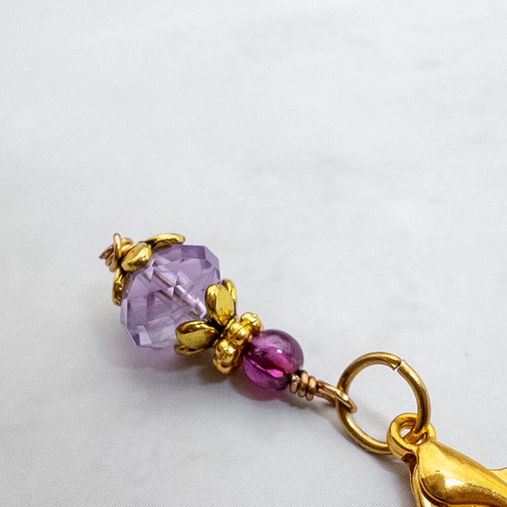 ピンクアメジスト ロードライトガーネット チャーム *bell* ストラップ イヤホンジャック パーツ変更可 be13