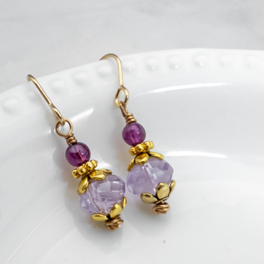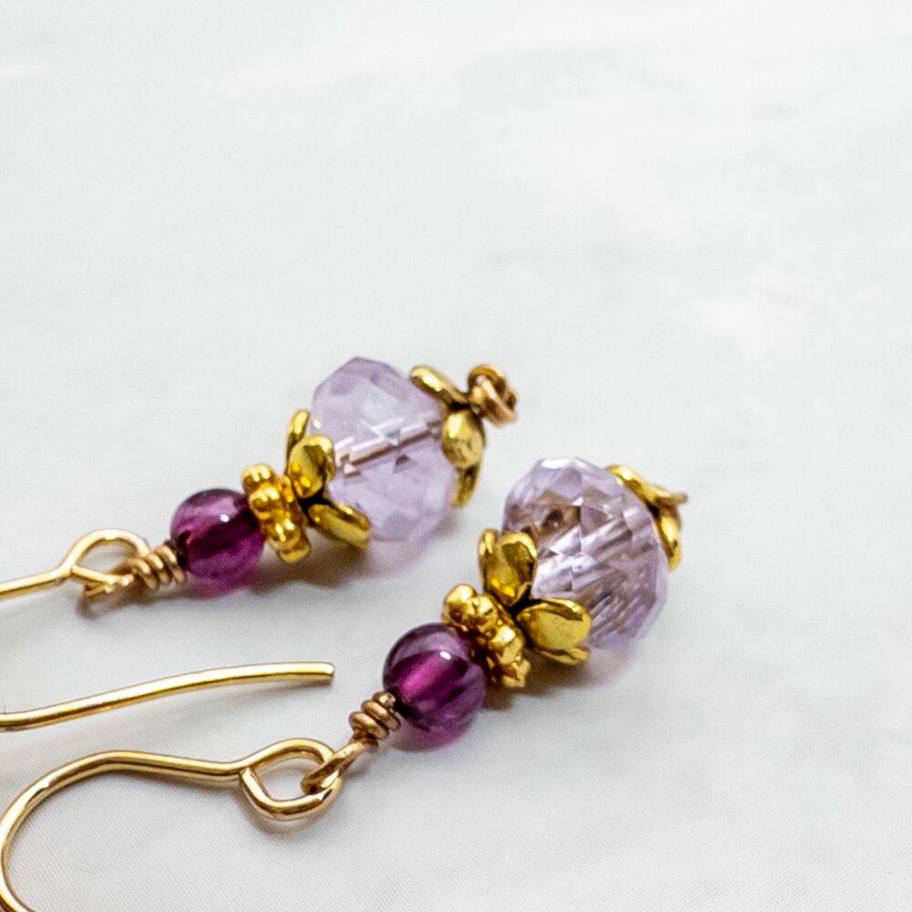 ピンクアメジスト ロードライトガーネット ピアス *bell* フックピアス ステンレス be10