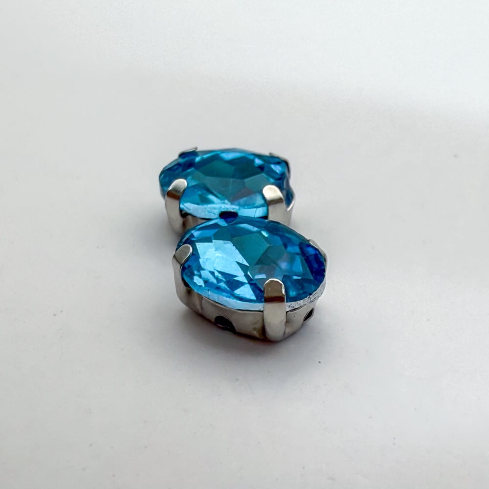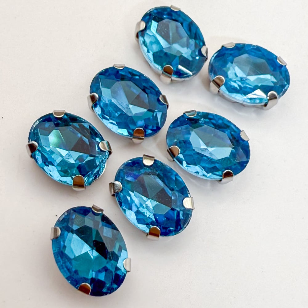 *15個* ガラス ラインストーン 8x6x4mm アクアマリン 真鍮セッティング オーバル bj024s