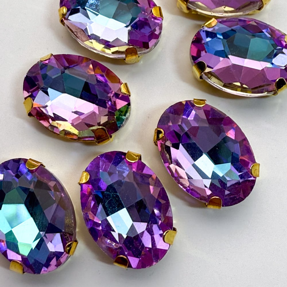 *10個* ガラス ラインストーン 14x10mm ヴィトレイルライト ステンレスセッティング オーバル 縫い付け パーツ LS41