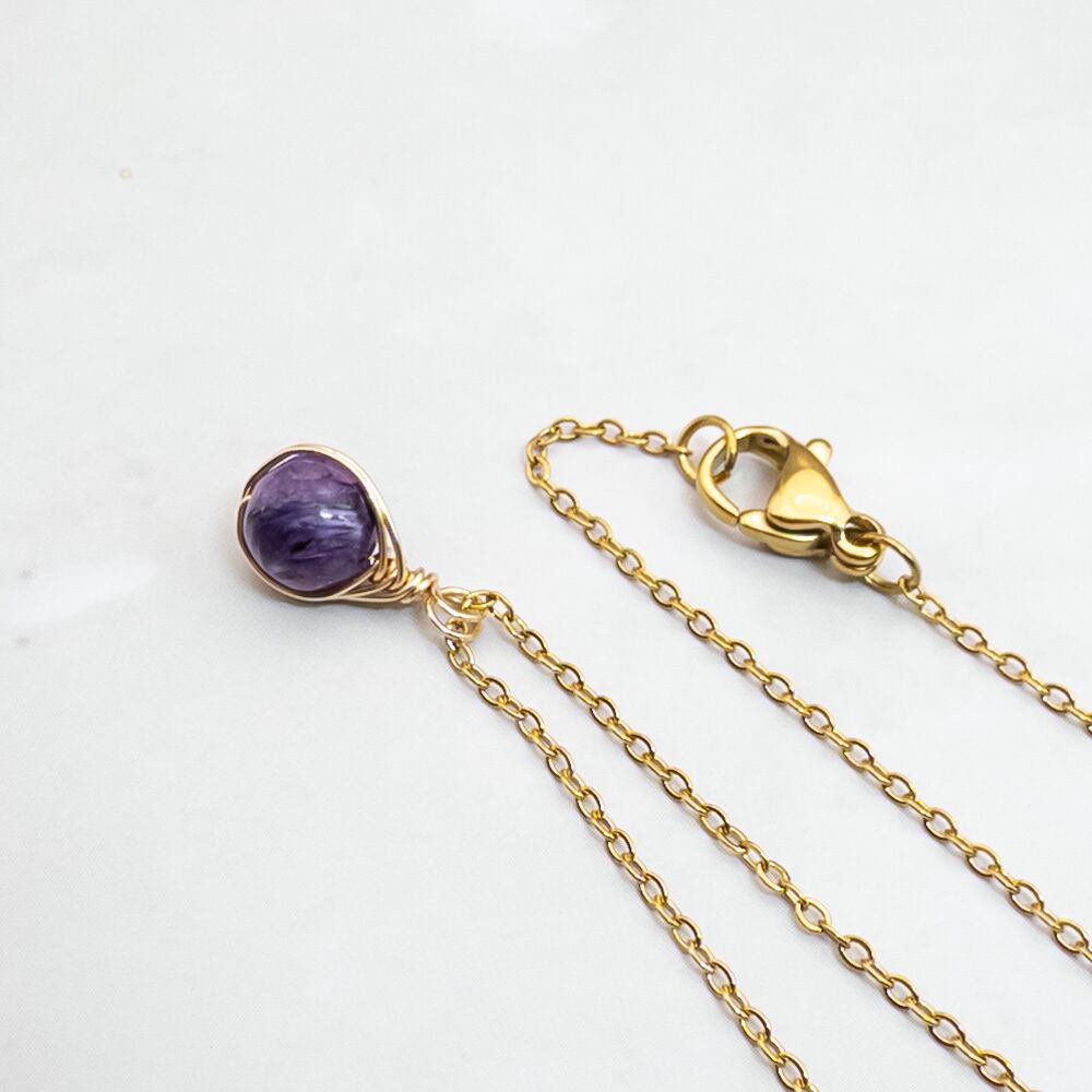 希少石 チャロアイト ペンダント ステンレス ネックレス ワイヤーラッピング p200