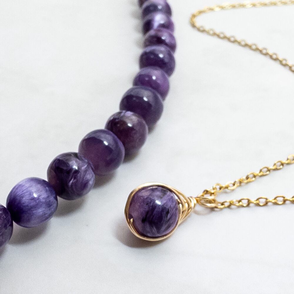 「魅惑」という石言葉が示す通り、人を惹きつけてやまないミステリアスな魅力を持ったチャロアイト。