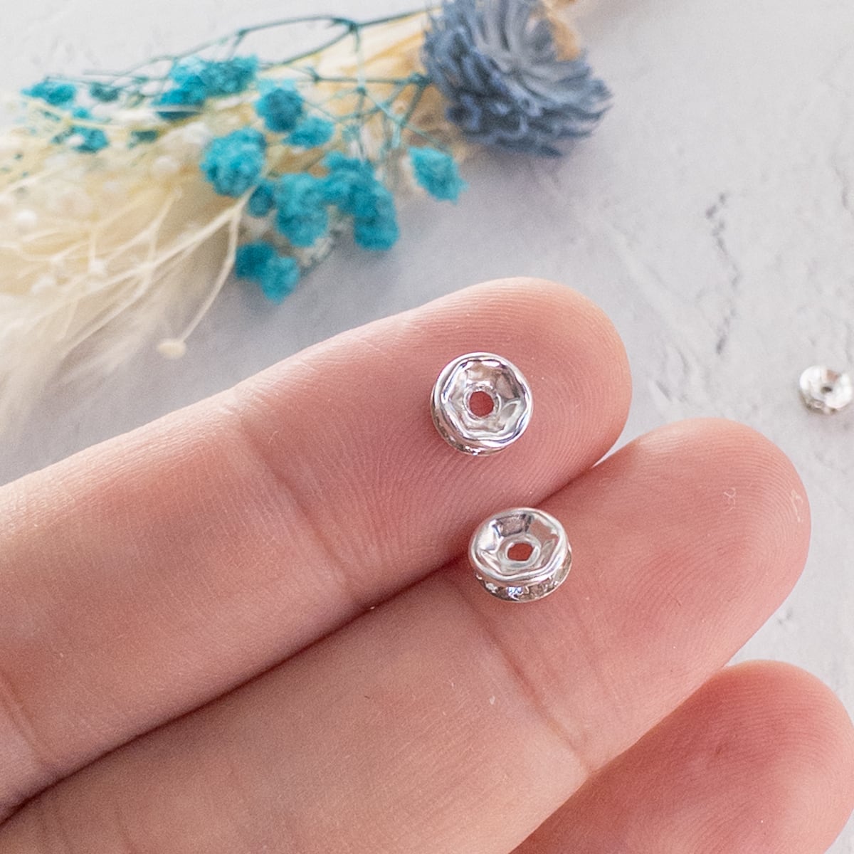 *40個* ロンデル 6×3mm ラインストーン アイアン製 銀色 スペーサービーズ bz134
