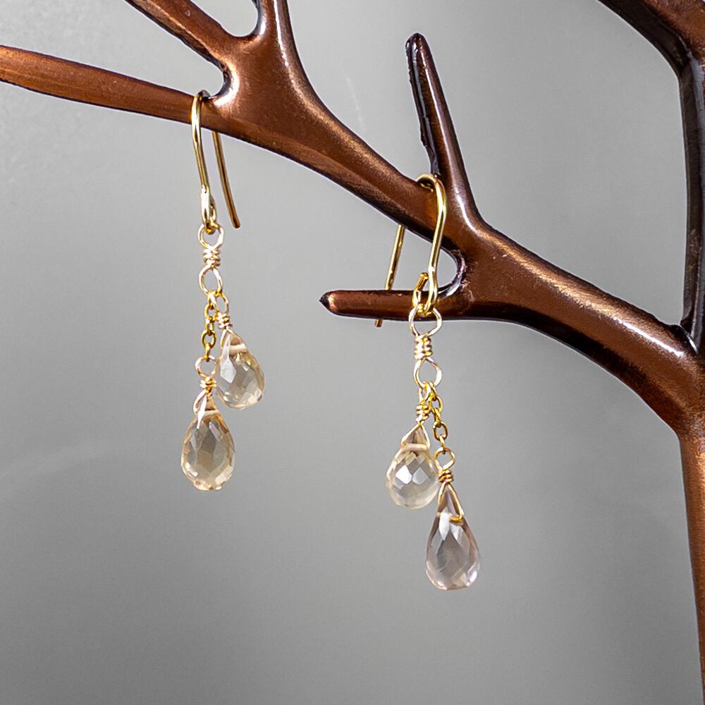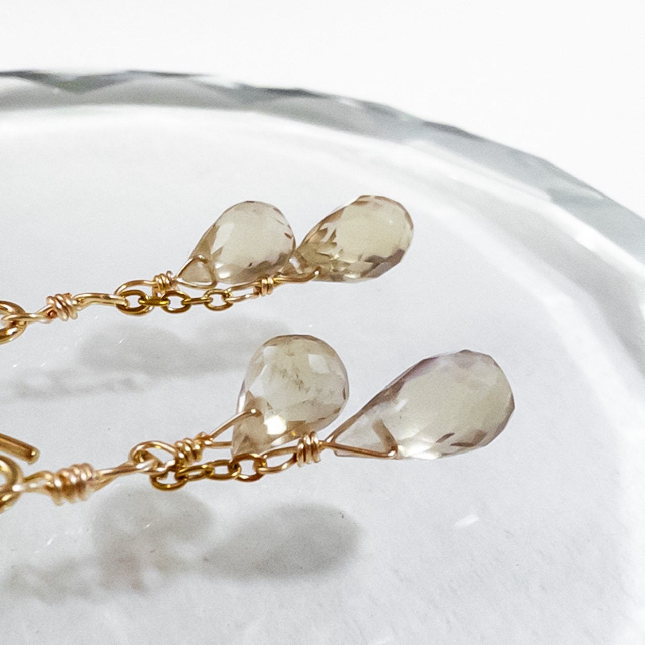 天然色 シャンパンクォーツ ピアス *fiore* ステンレス フックピアス K14GF変更可 fi142