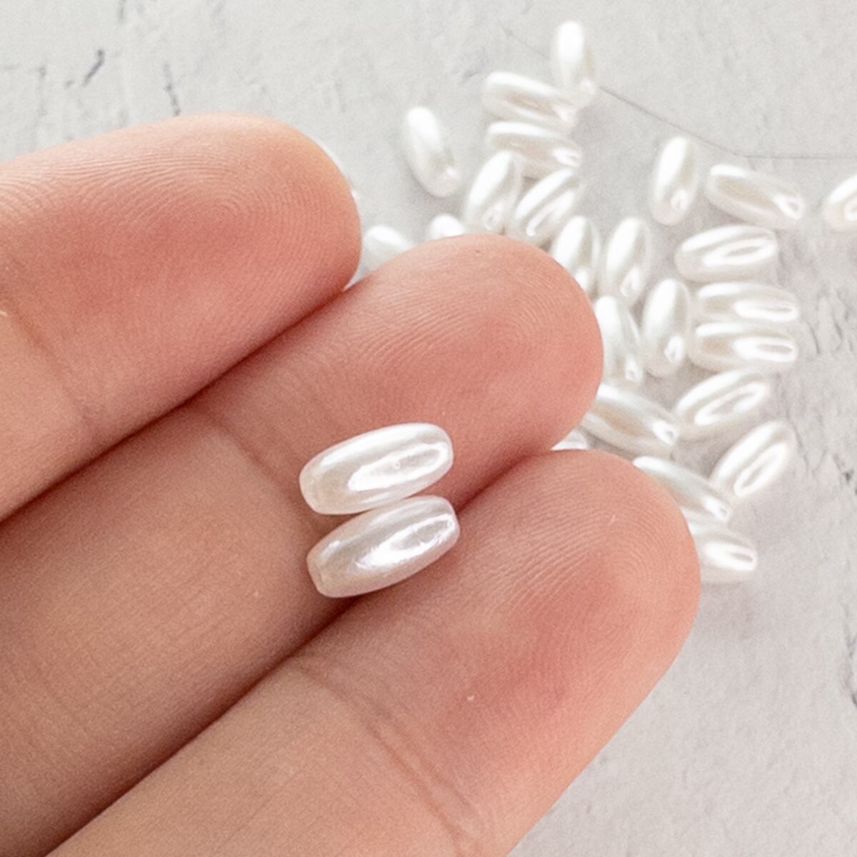 *100個入り* アクリルビーズ パール ライス ホワイト 8x4mm bz130