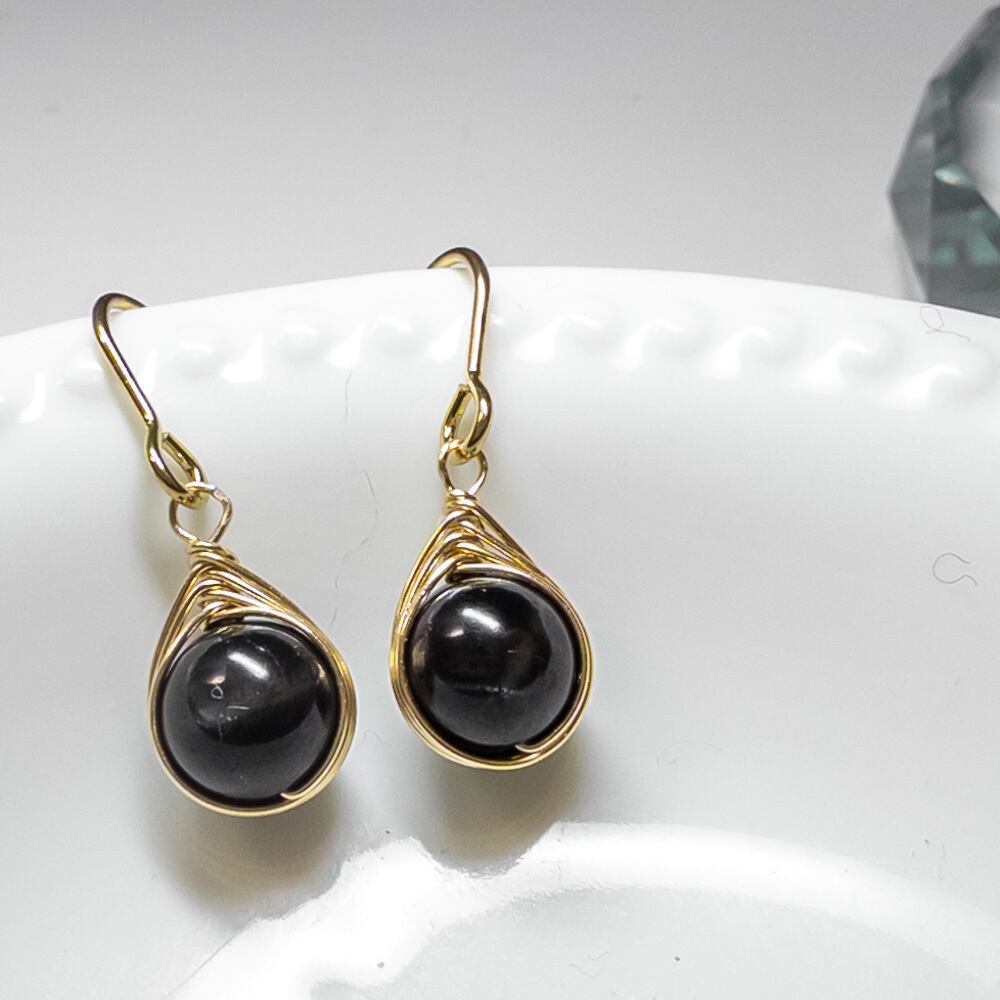 進むべき道を示す星 ブラックスターダイオプサイト ピアス ステンレス フックピアス *embrace* em003s