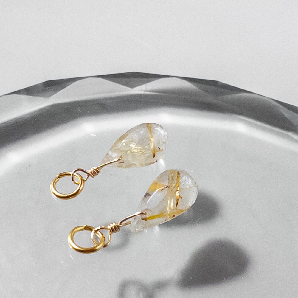 *1ペア* ルチルクォーツ ピアスチャーム *fofo* 天然石 チャーム ステンレス fo061