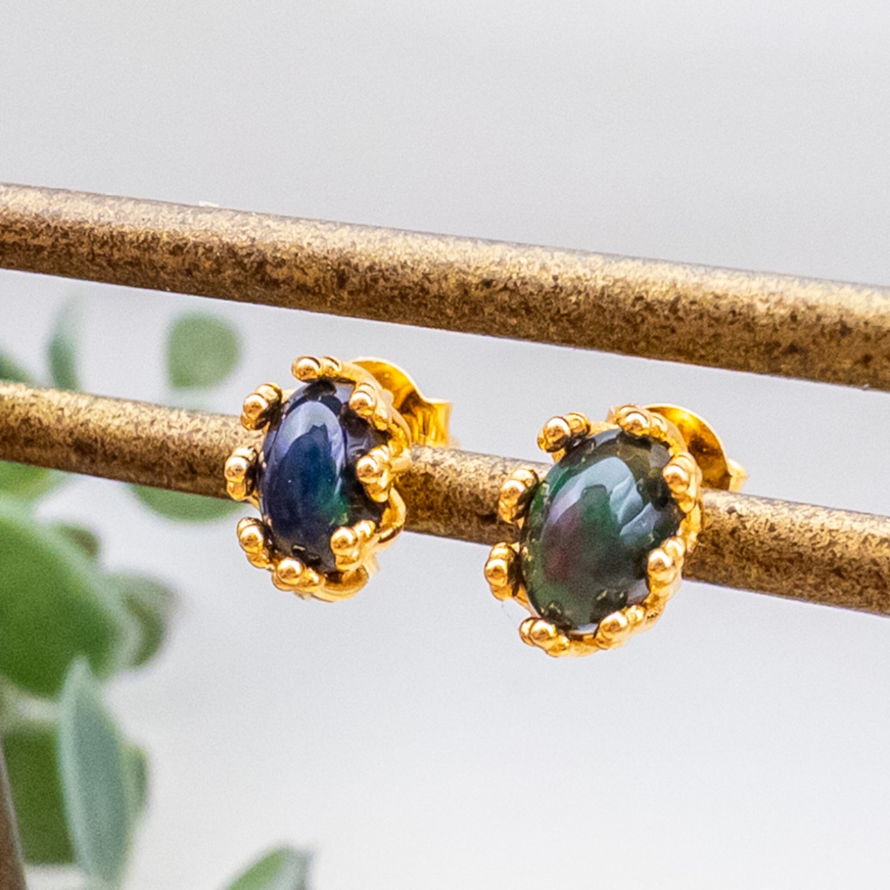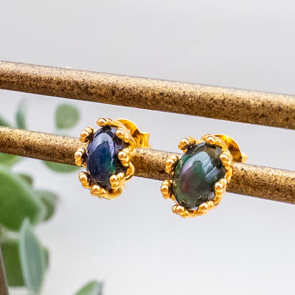 ブラックオパールのシンプルピアスです