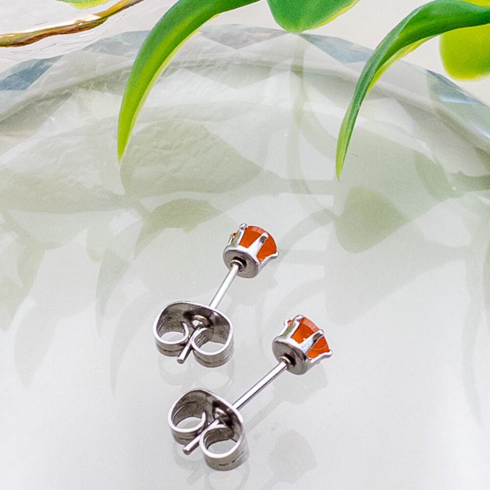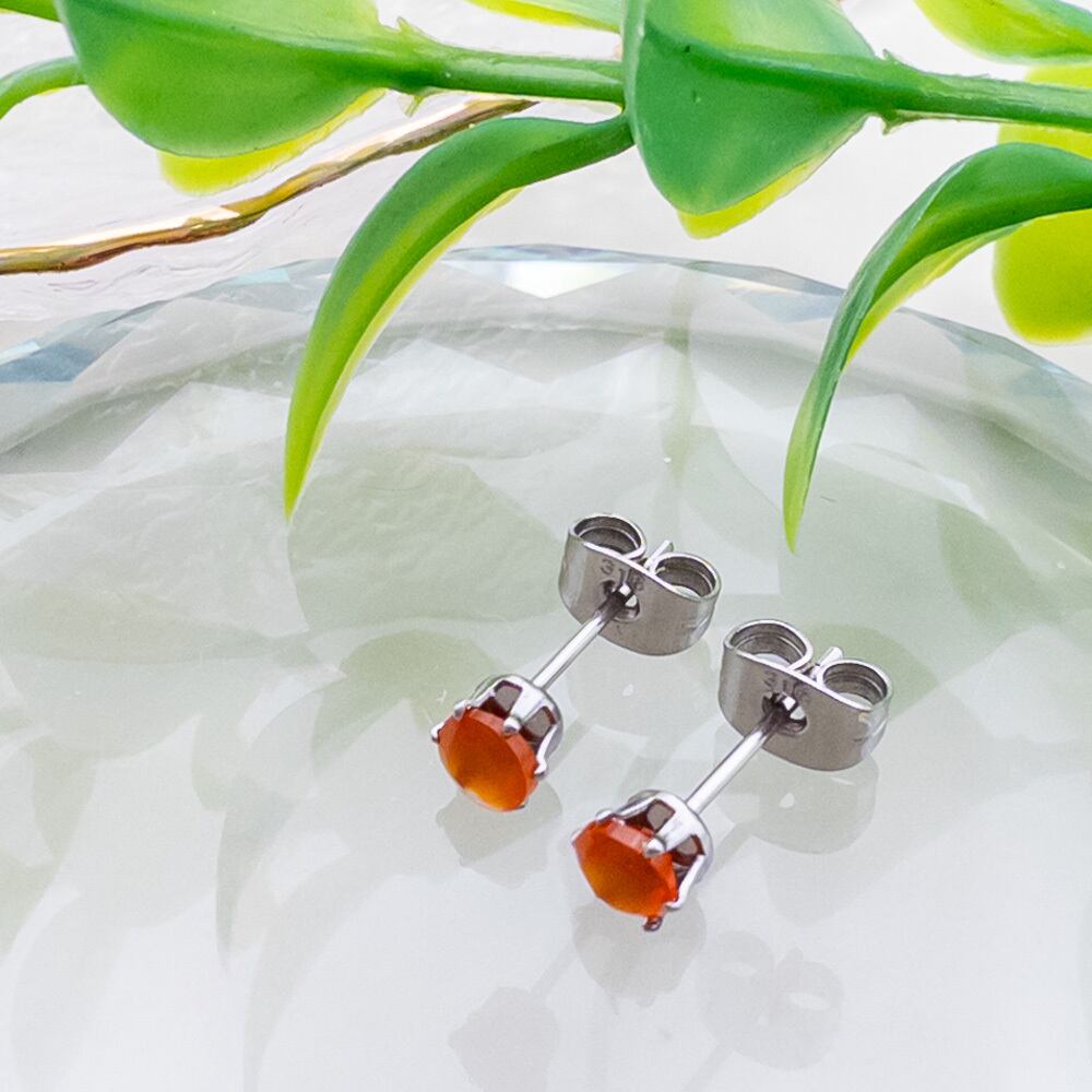 普段使いに カーネリアン 4mm スタッドピアス *Rire* 一粒ピアス ステンレス l016