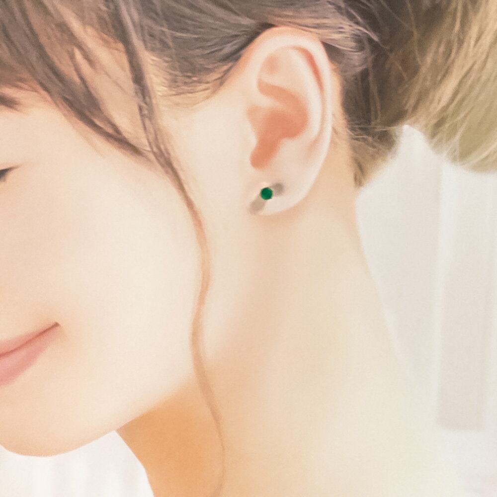 4mmのラウンドカットをシンプルな一粒ピアスにしてみました