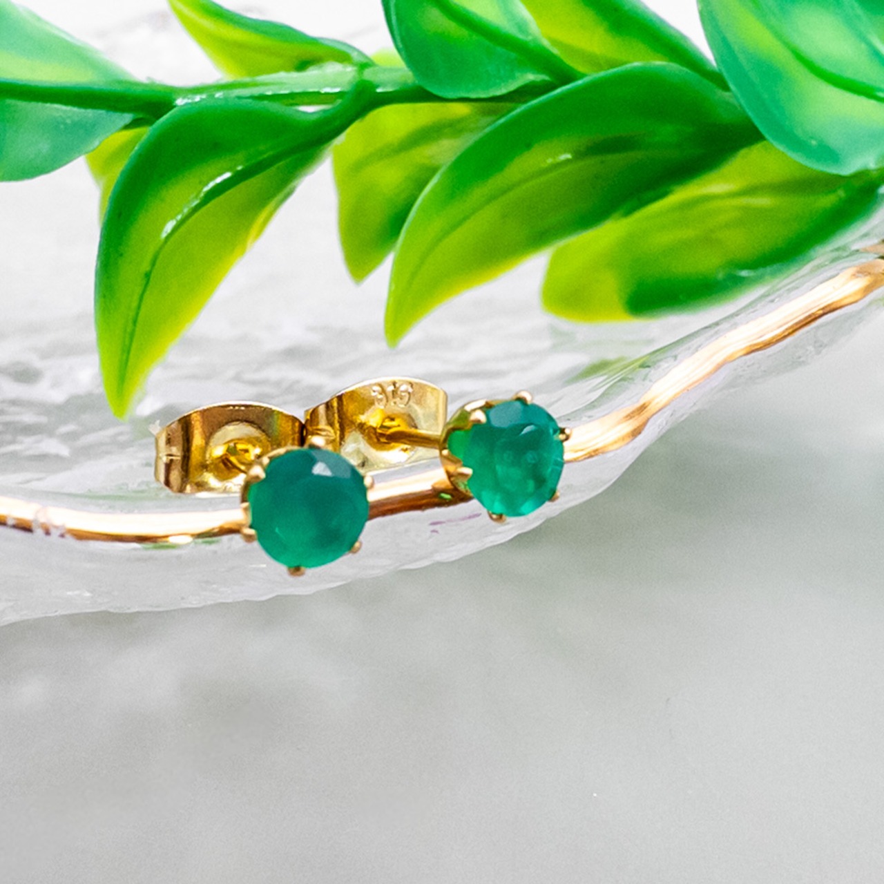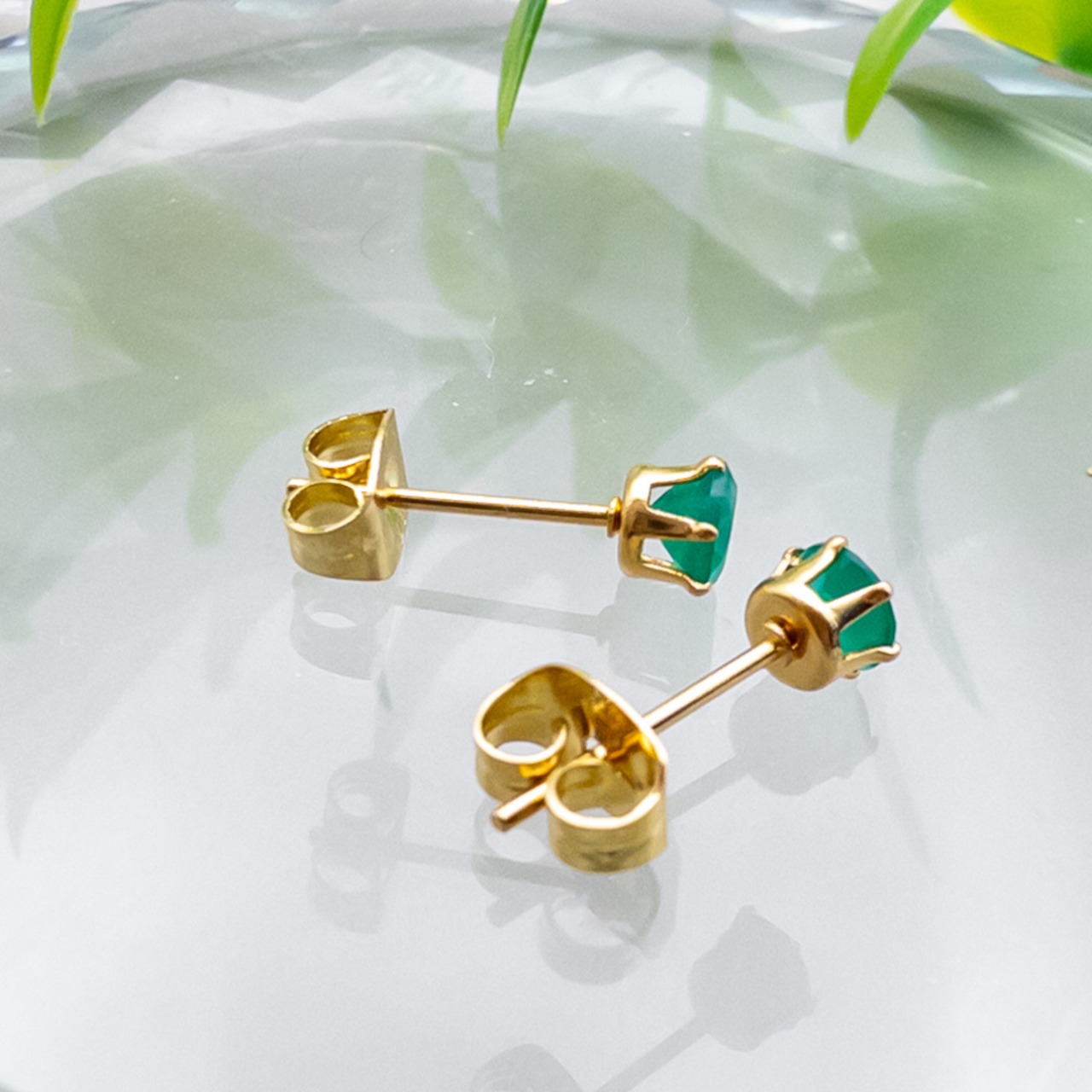 普段使いに グリーンオニキス 4mm スタッドピアス *Rire* 一粒ピアス ステンレス l015