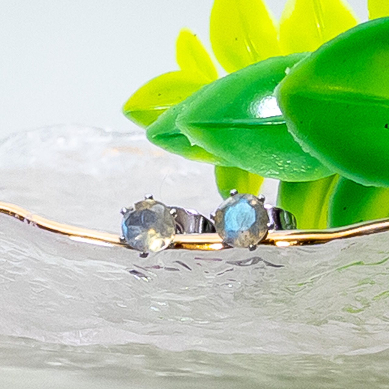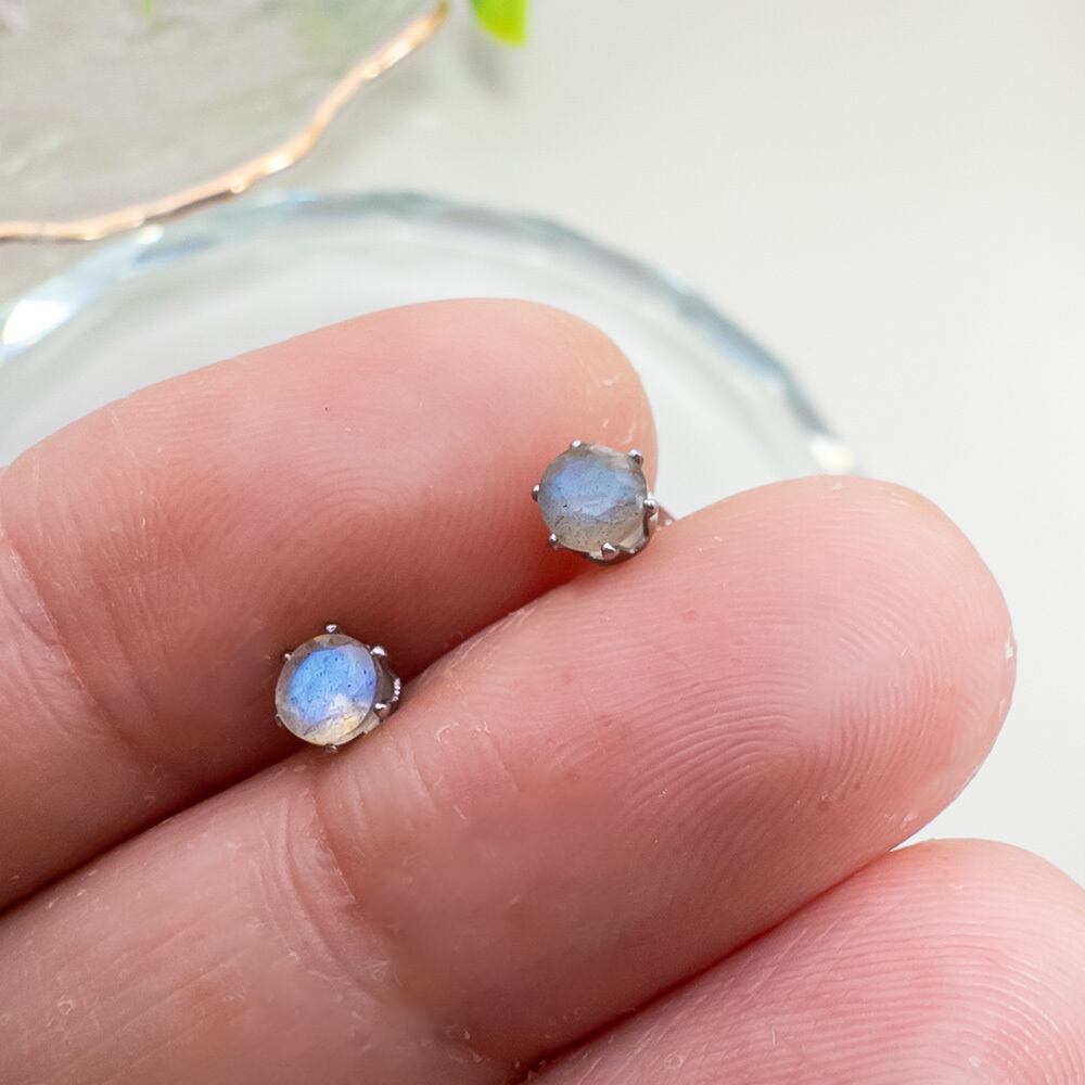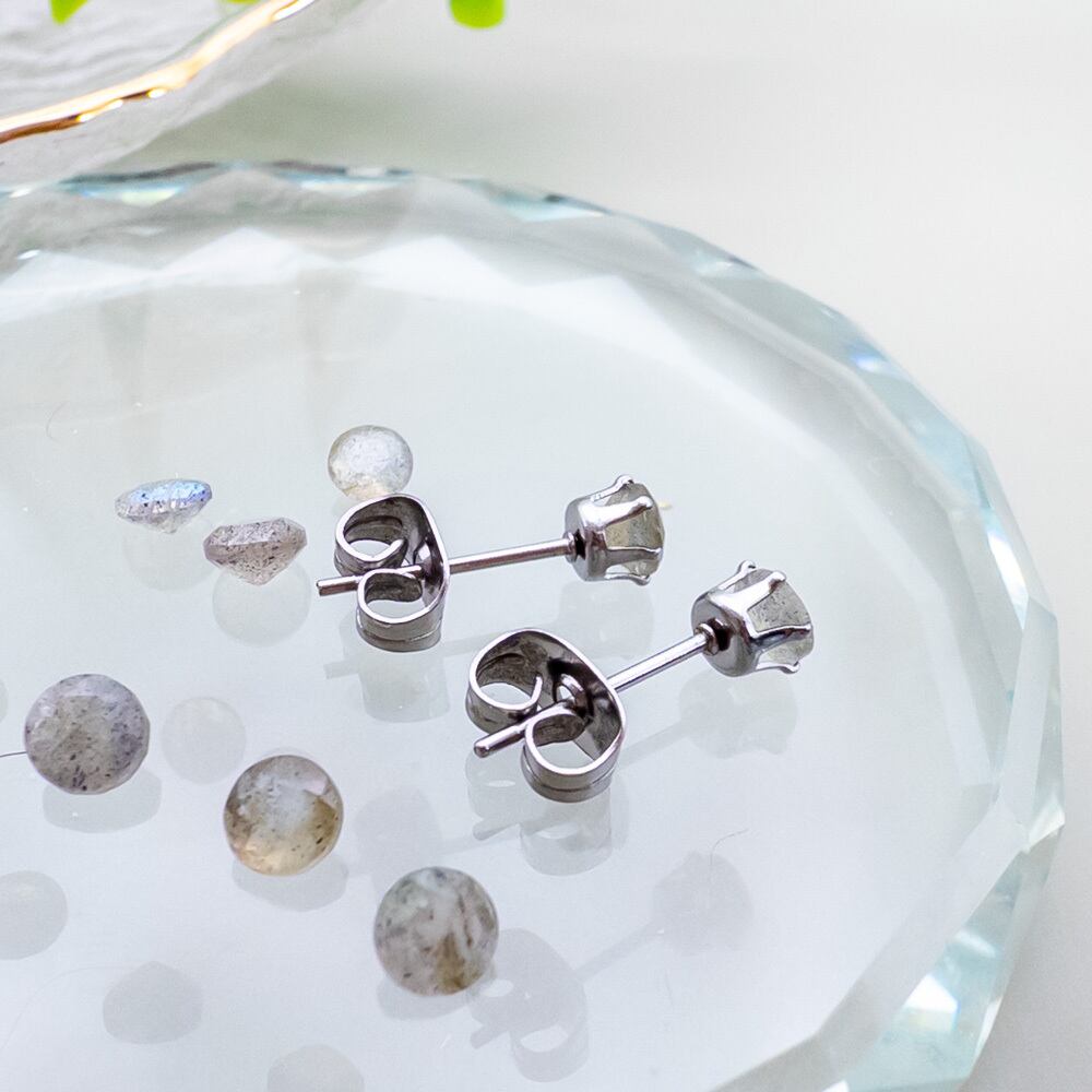 普段使いに ラブラドライト 4mm スタッドピアス *Rire* 一粒ピアス ステンレス l014