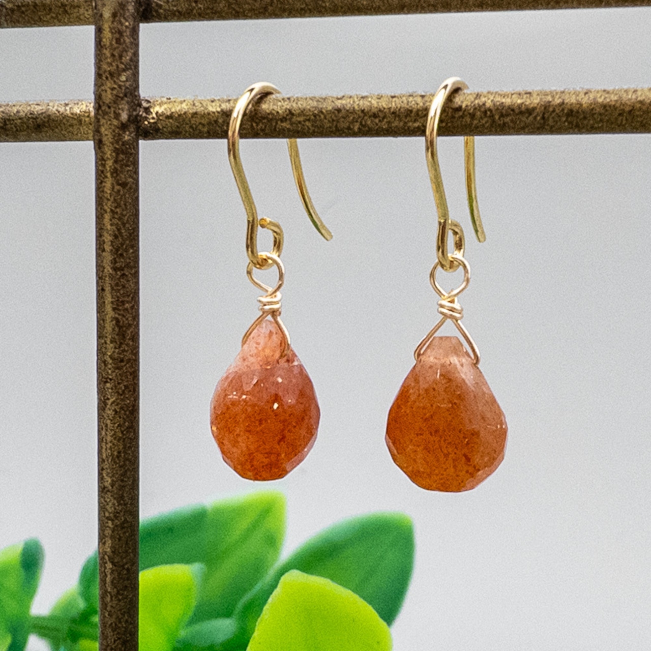*訳アリ* タンザニア産 サンストーン ピアス ステンレス フックピアス w041s3