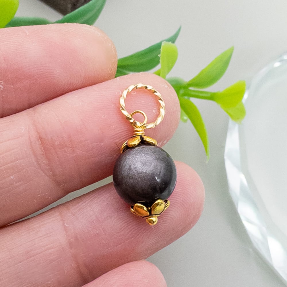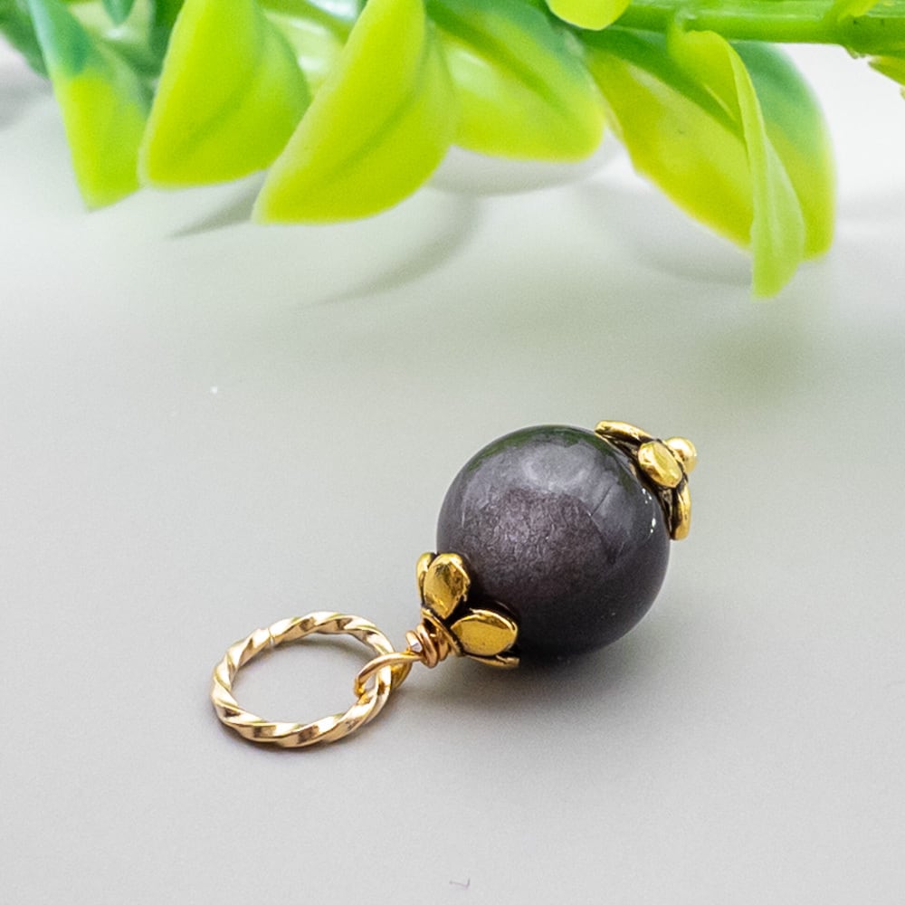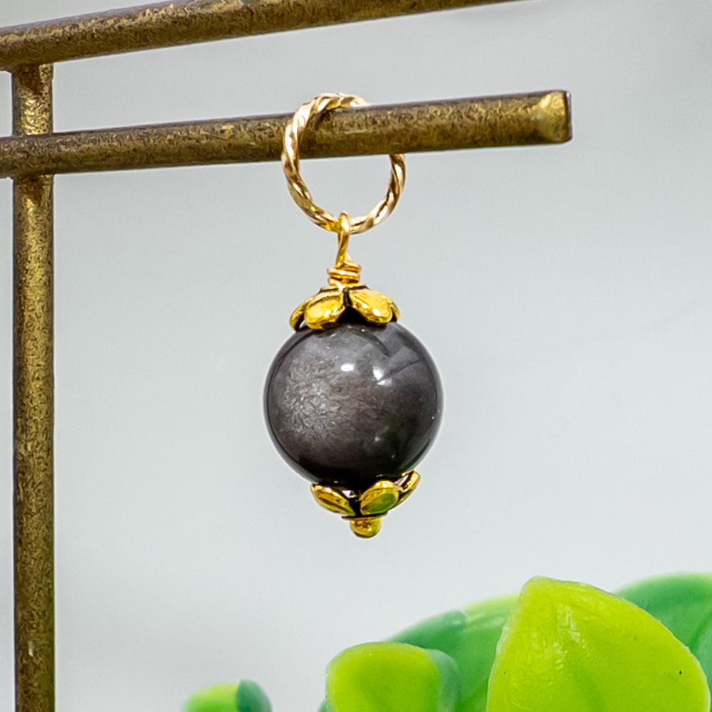 危険から身を守る シルバーオブシディアン チャーム *coron* ネックレスやイヤホンジャックへ変更可 cr066