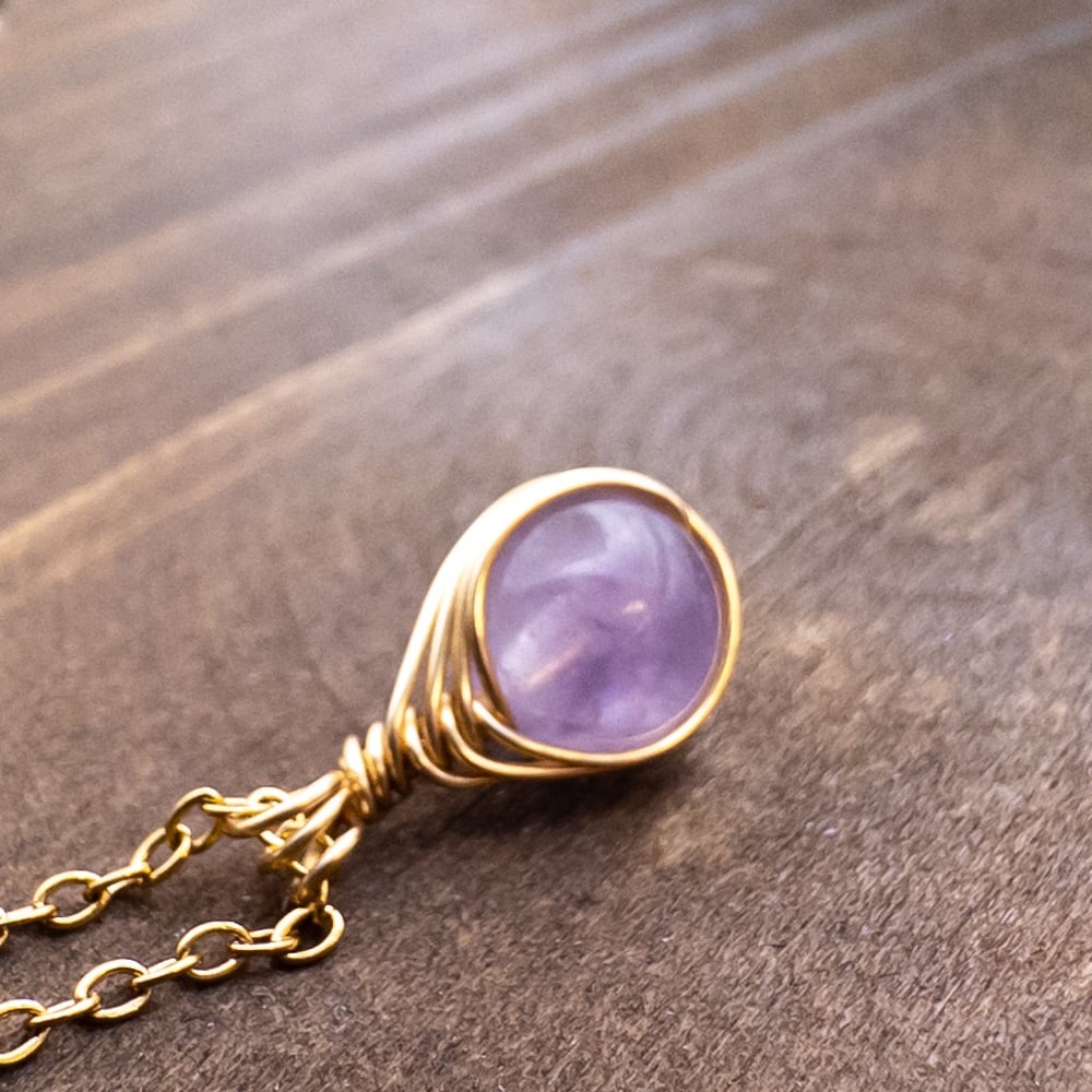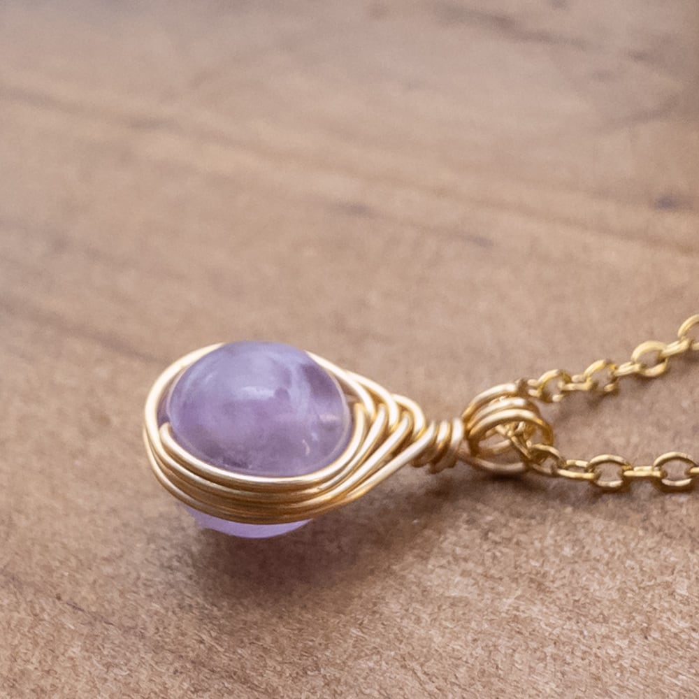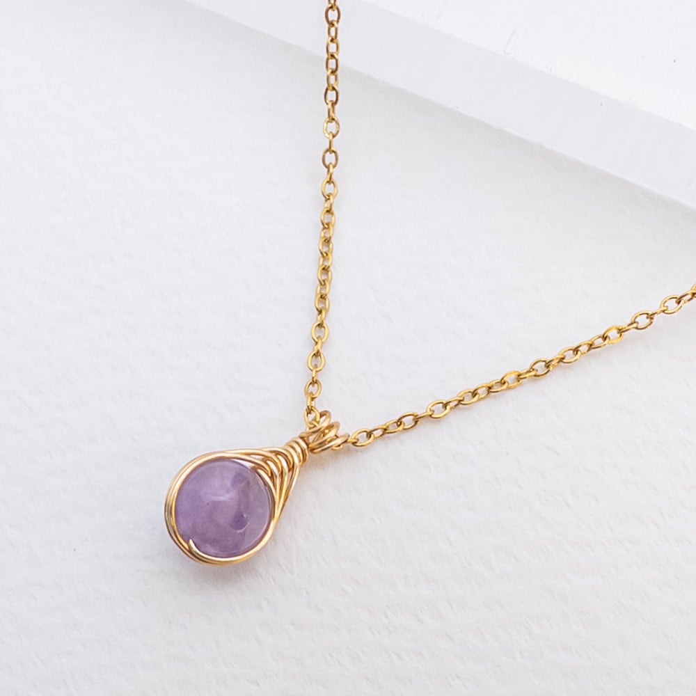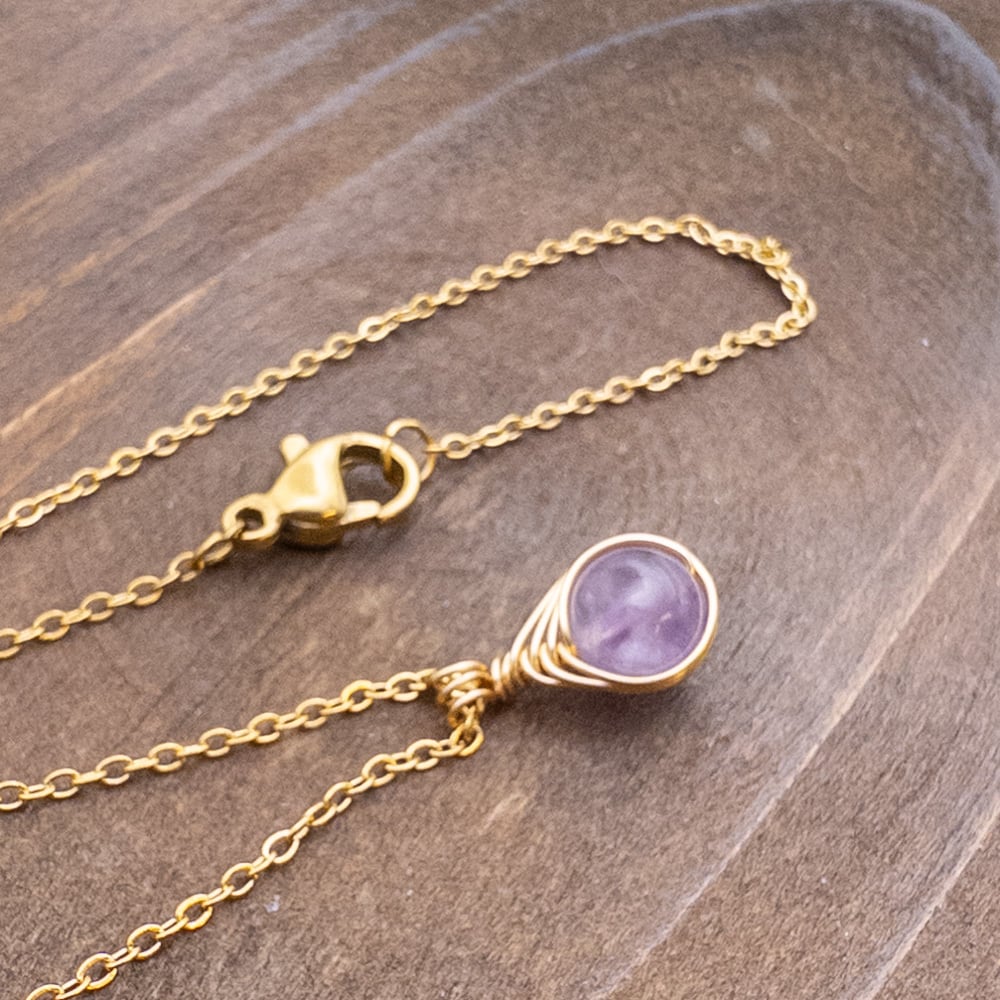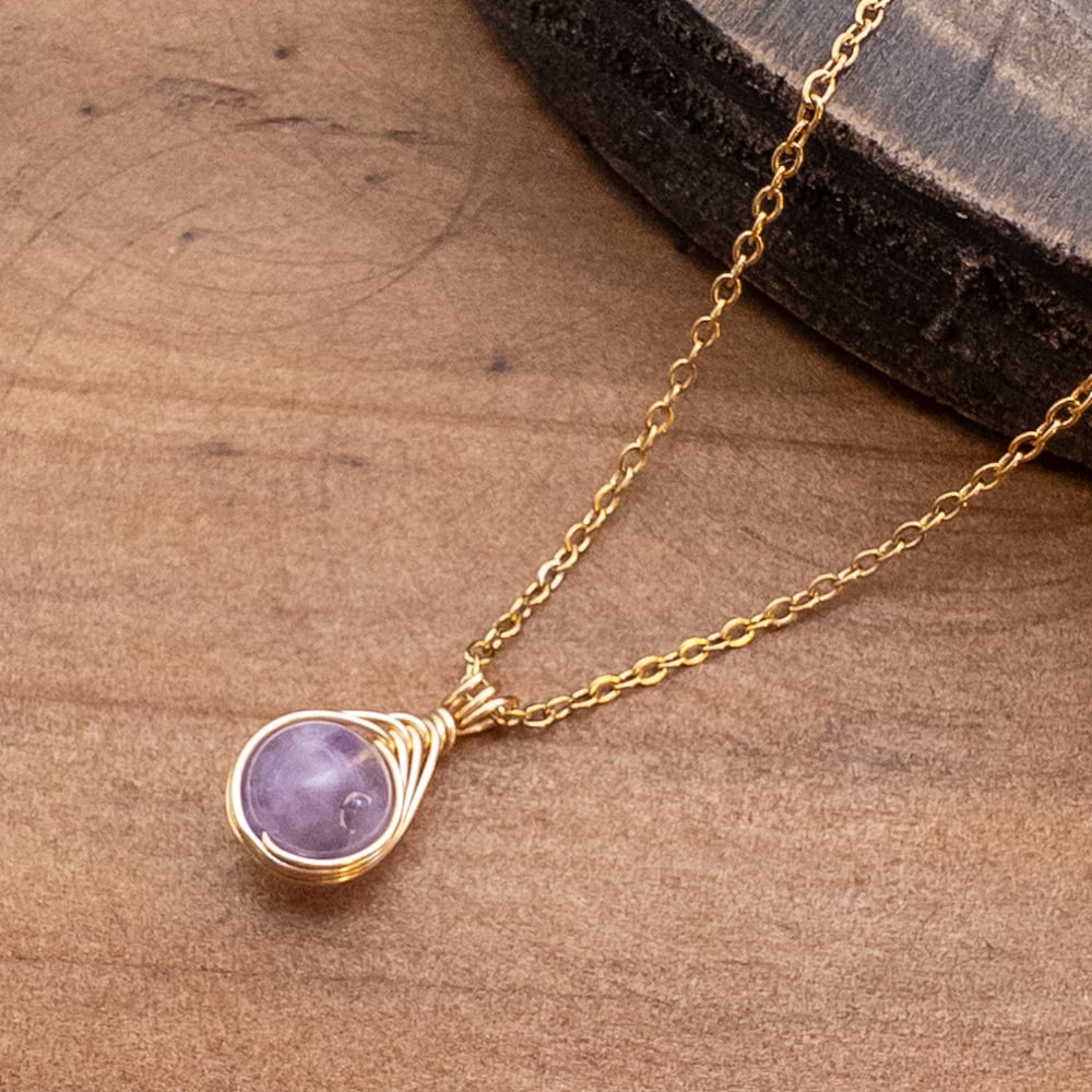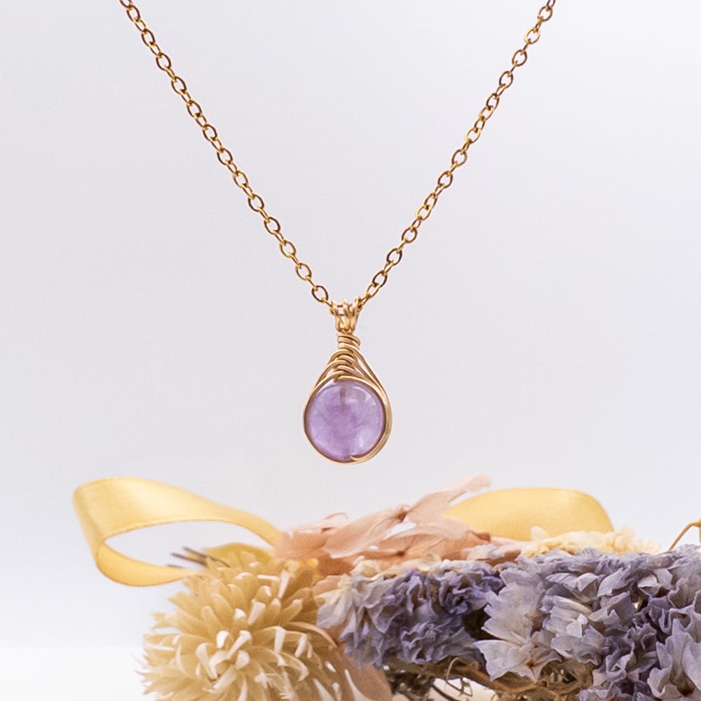 小さな ラベンダーアメジスト ペンダント ネックレス アメジスト ステンレス ワイヤーラッピング p137